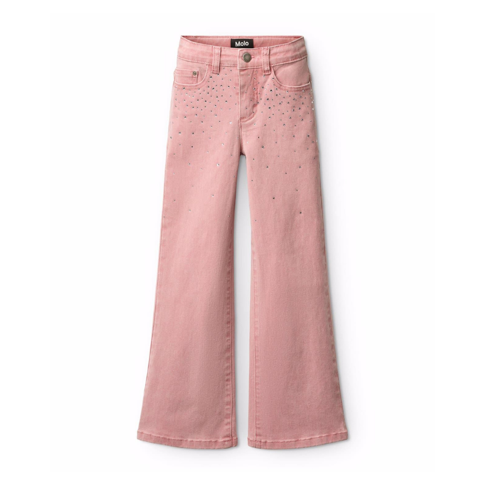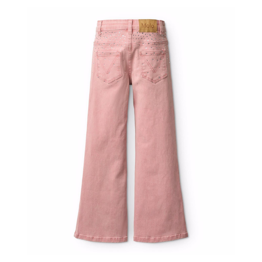 Bleikar, útvíðar gallabuxur með steinum.