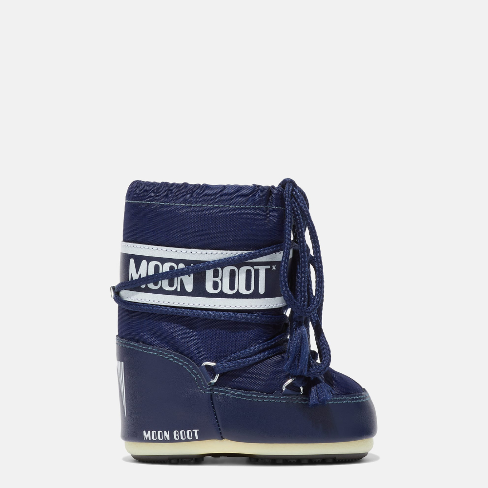 Blá Moon Boot. Skórnir eru innblásnir af tungl lendingunni 1969 og eru vel einangraðir með léttum millisóla og gripmiklum gúmmí sóla. Skórnir eru fóðraðir með svokölluðu froðufóðri sem hefur verið hannað til að laga sig að fætinum og veitir fullkomin þægindi. Fóðrið býður upp á þann eiginleika að hvert par spannar allt að þrjár stærðir.