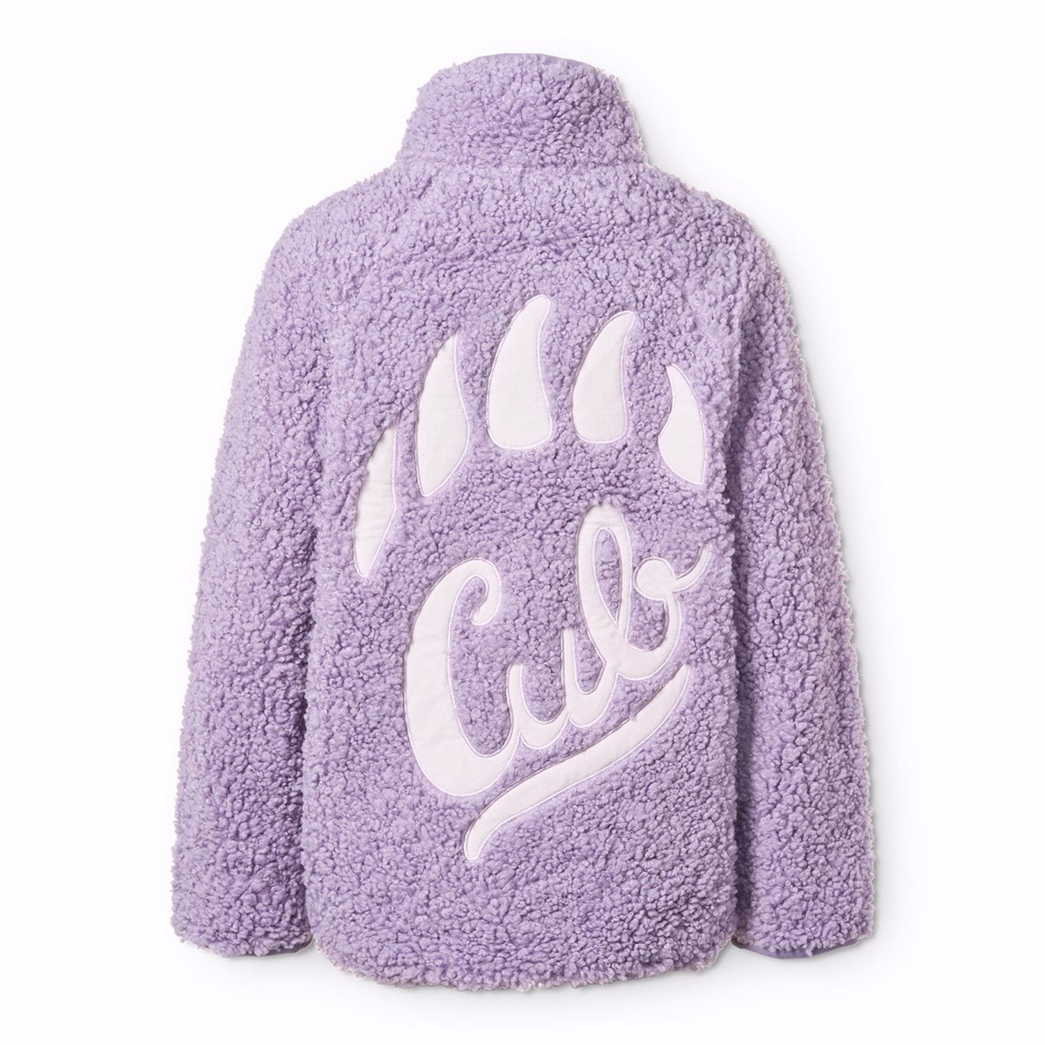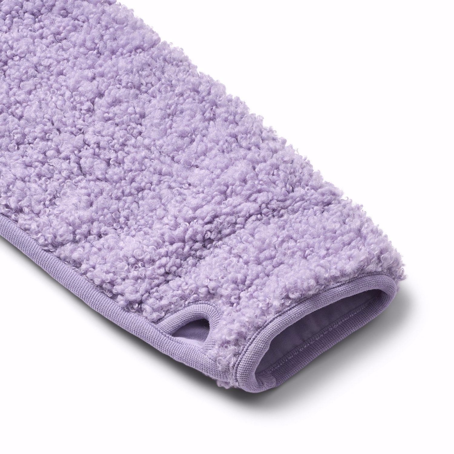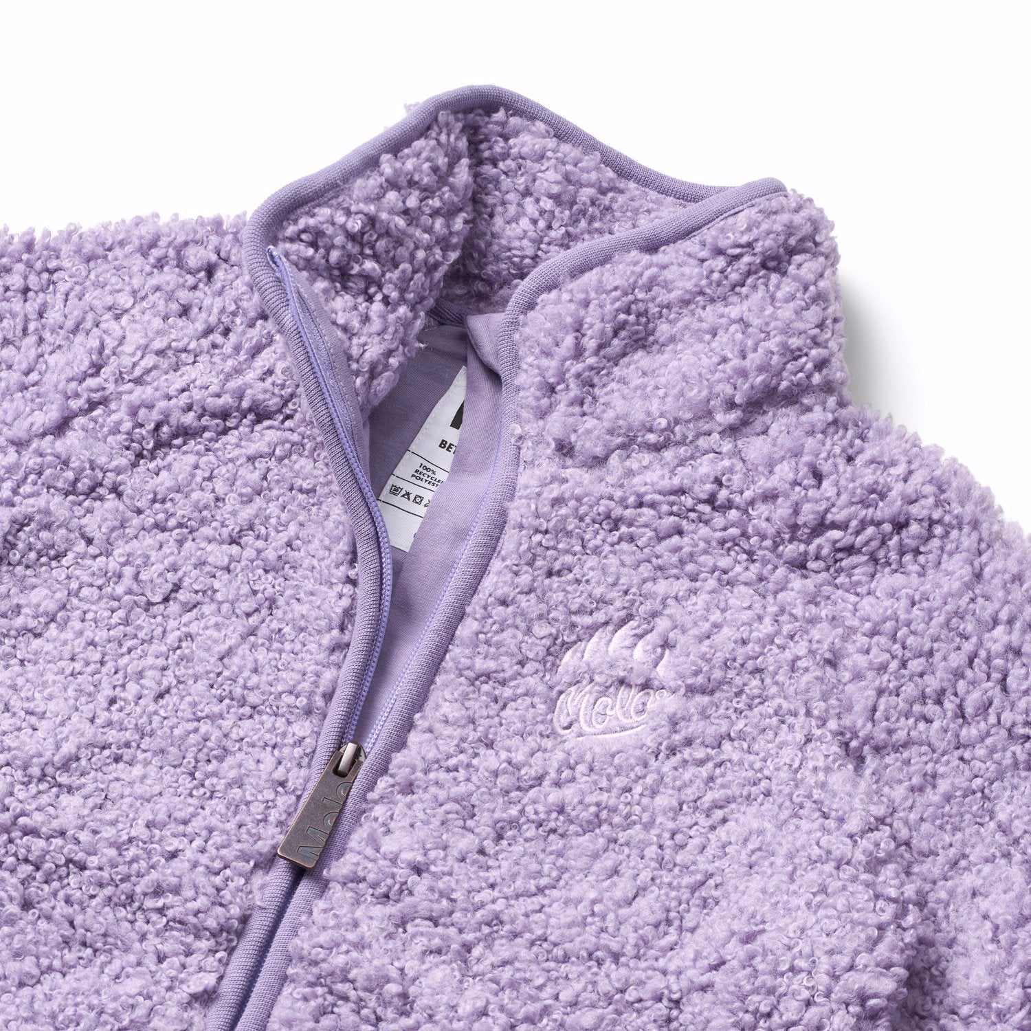 Ljós fjólublá, fluffy flíspeysa frá Molo með stóru, útsaumuðu logo að aftan.