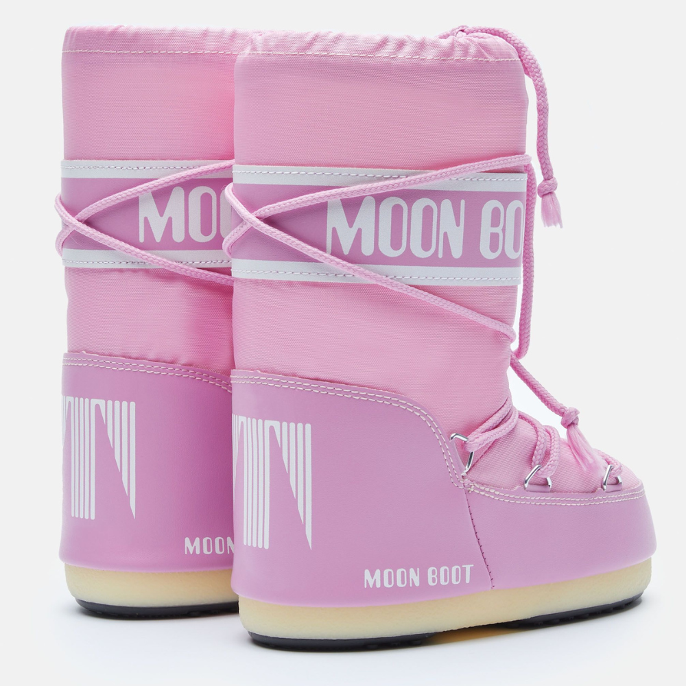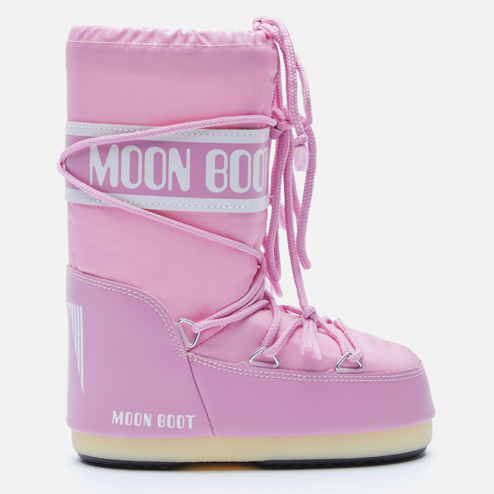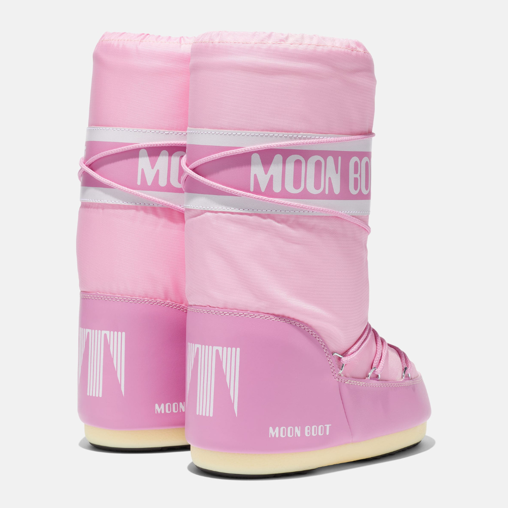 Bleik, há Moon Boot. Skórnir eru innblásnir af tungl lendingunni 1969 og eru vel einangraðir með léttum millisóla og gripmiklum gúmmí sóla. Skórnir eru fóðraðir með svokölluðu froðufóðri sem hefur verið hannað til að laga sig að fætinum og veitir fullkomin þægindi. Fóðrið býður upp á þann eiginleika að hvert par spannar allt að þrjár stærðir.