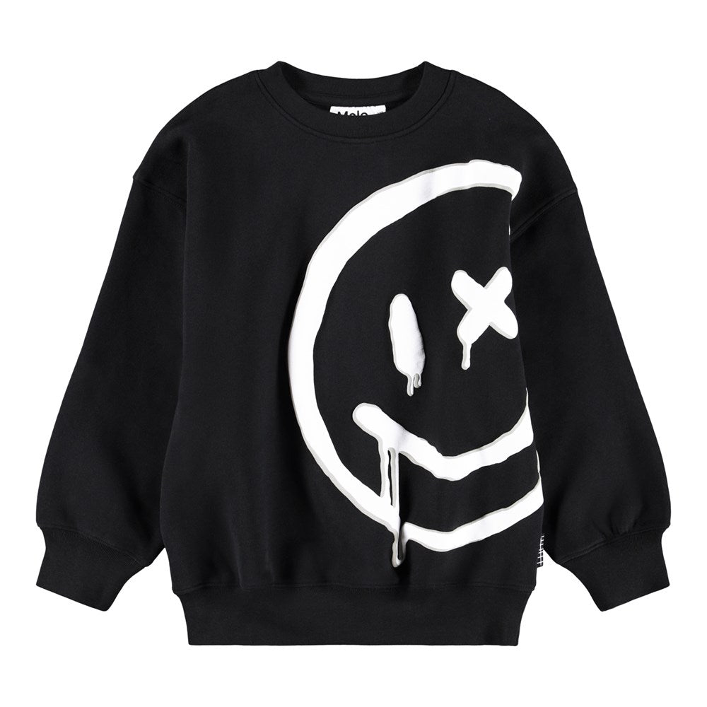 Svört joggingpeysa frá Molo með hvítum broskalli að framan.