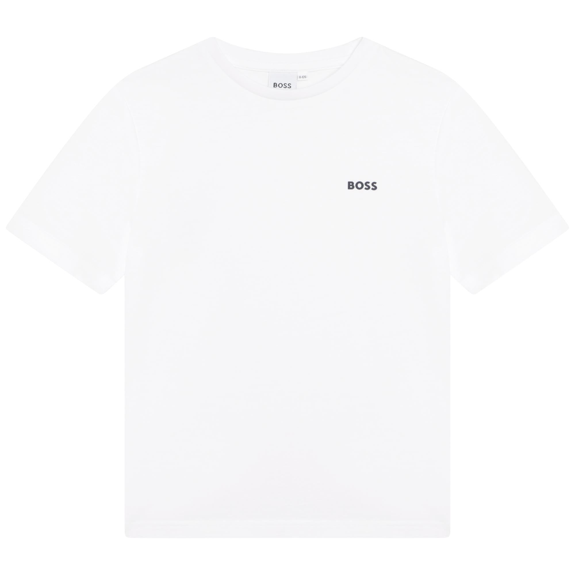 Hvítur stuttermabolur frá Boss með litlu logo að framan.