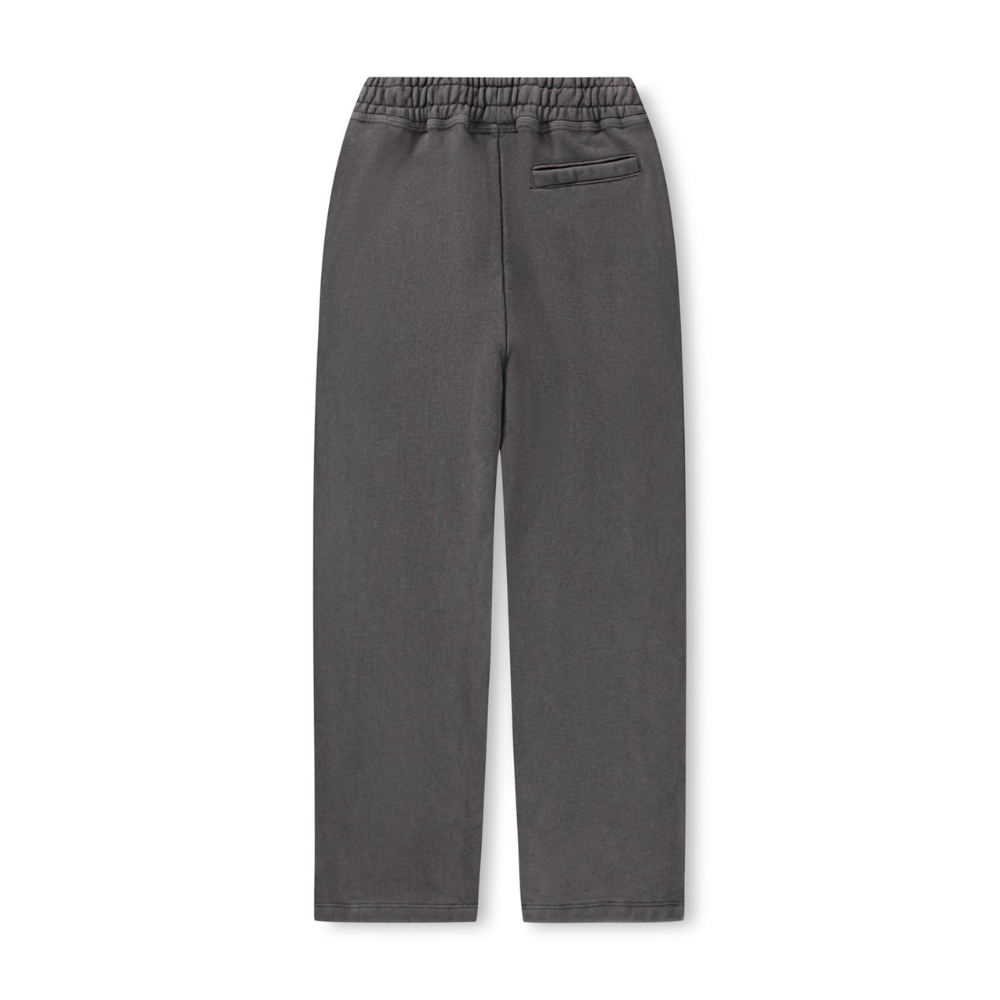 Gráar joggingbuxur frá Molo. Buxurnar eru bundnar í mittið.