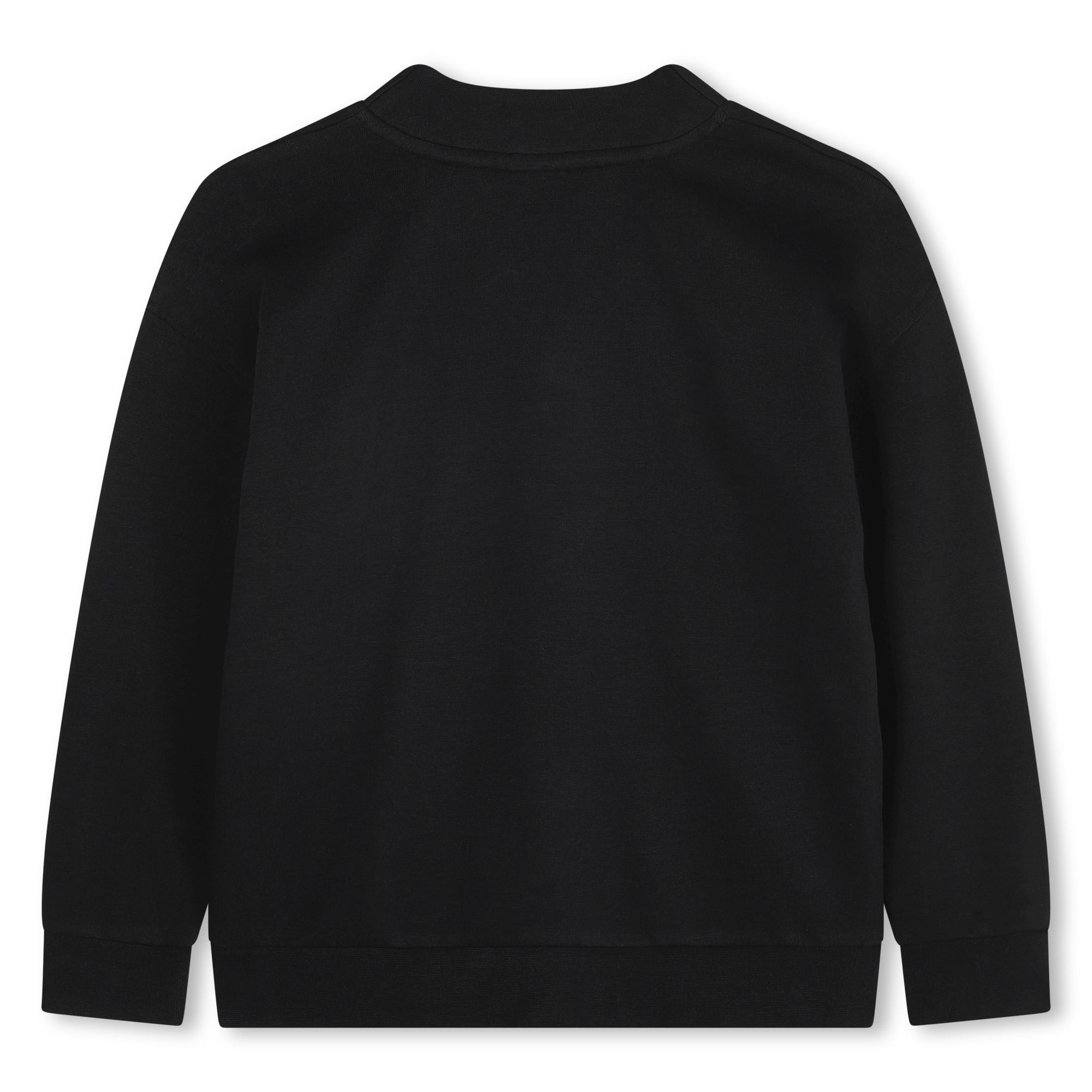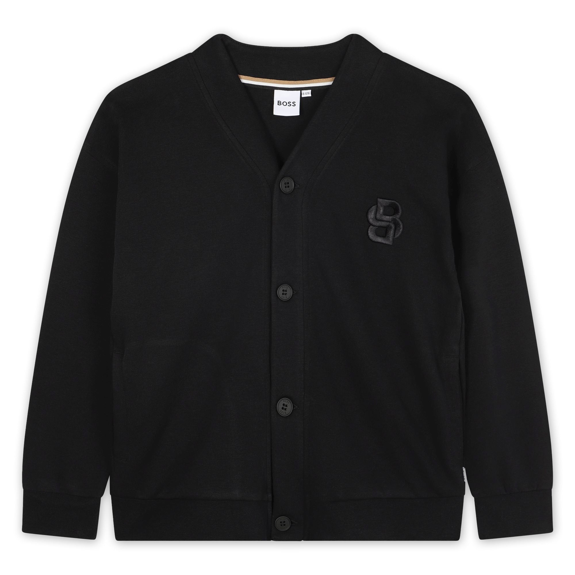 Svört, hneppt peysa frá Boss með útsaumuðu logo að framan.