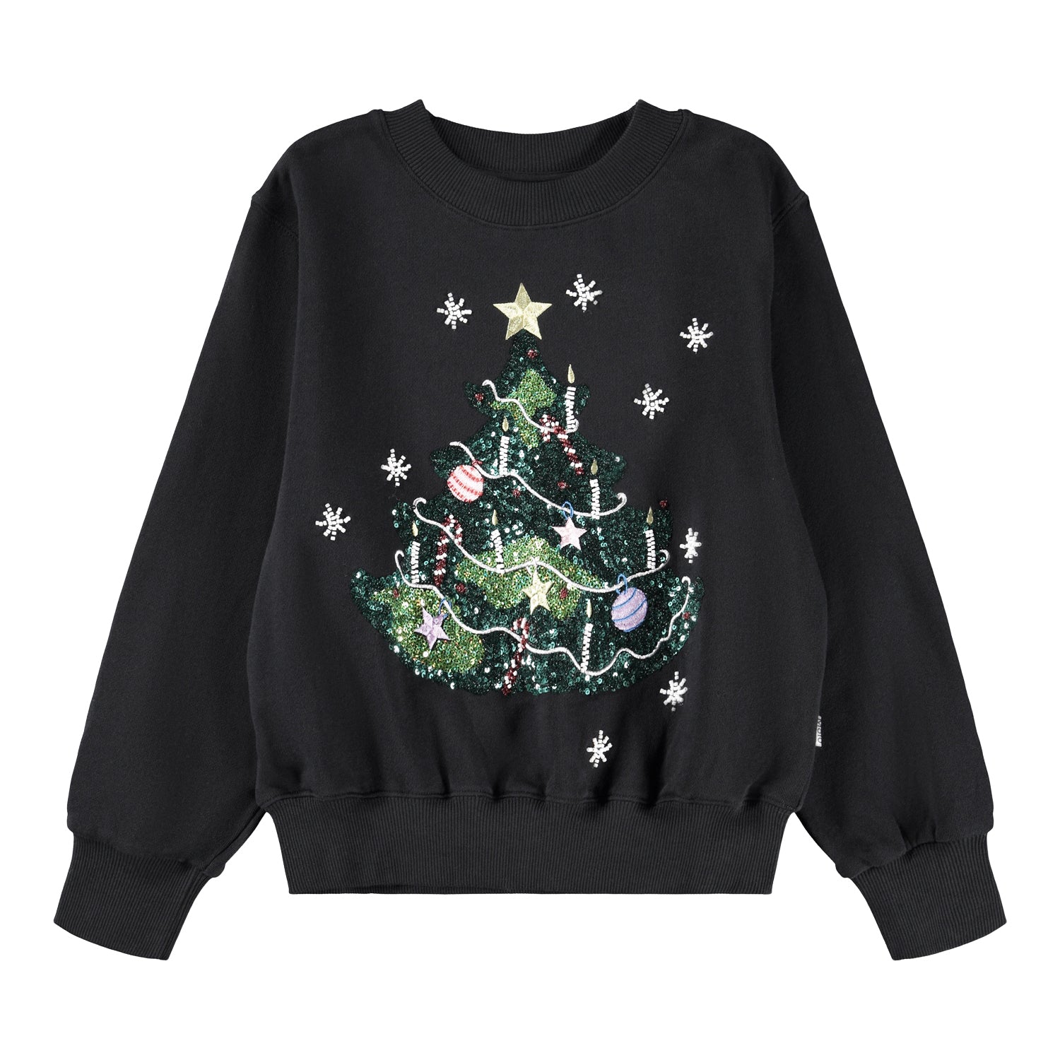 Svört peysa frá Molo með fallegri útsaumaðri jólamynd að framan.