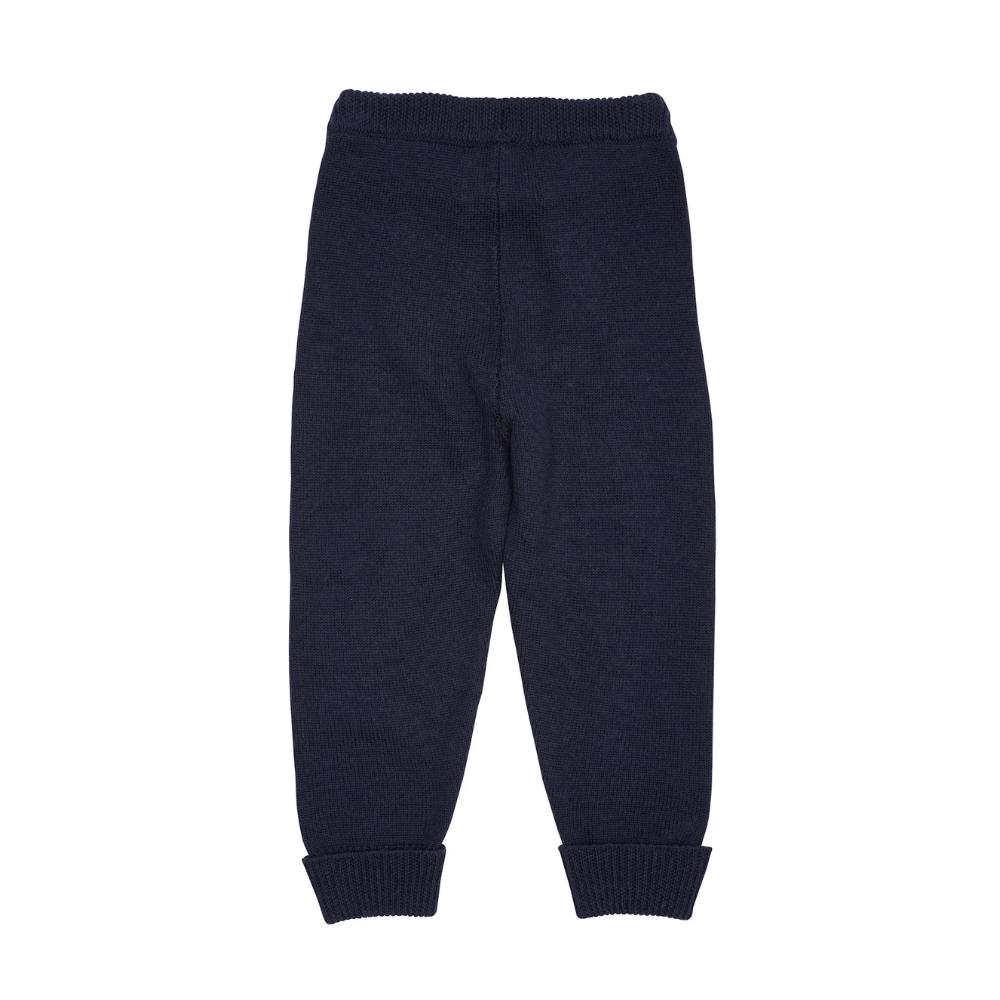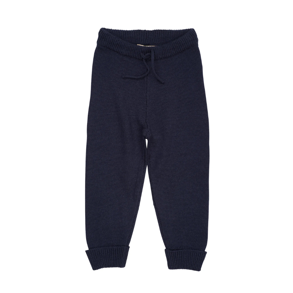 Dökk bláar merino ullarbuxur frá Copenhagen Colors. Buxurnar eru dasamlega mjúkar og einstaklega þægilegar. Buxurnar er bundnar í mittið og með uppábroti við skálmar. Virkni, þægindi og hreyfigeta eru þættir sem hafðir eru að leiðarljósi við hönnun.