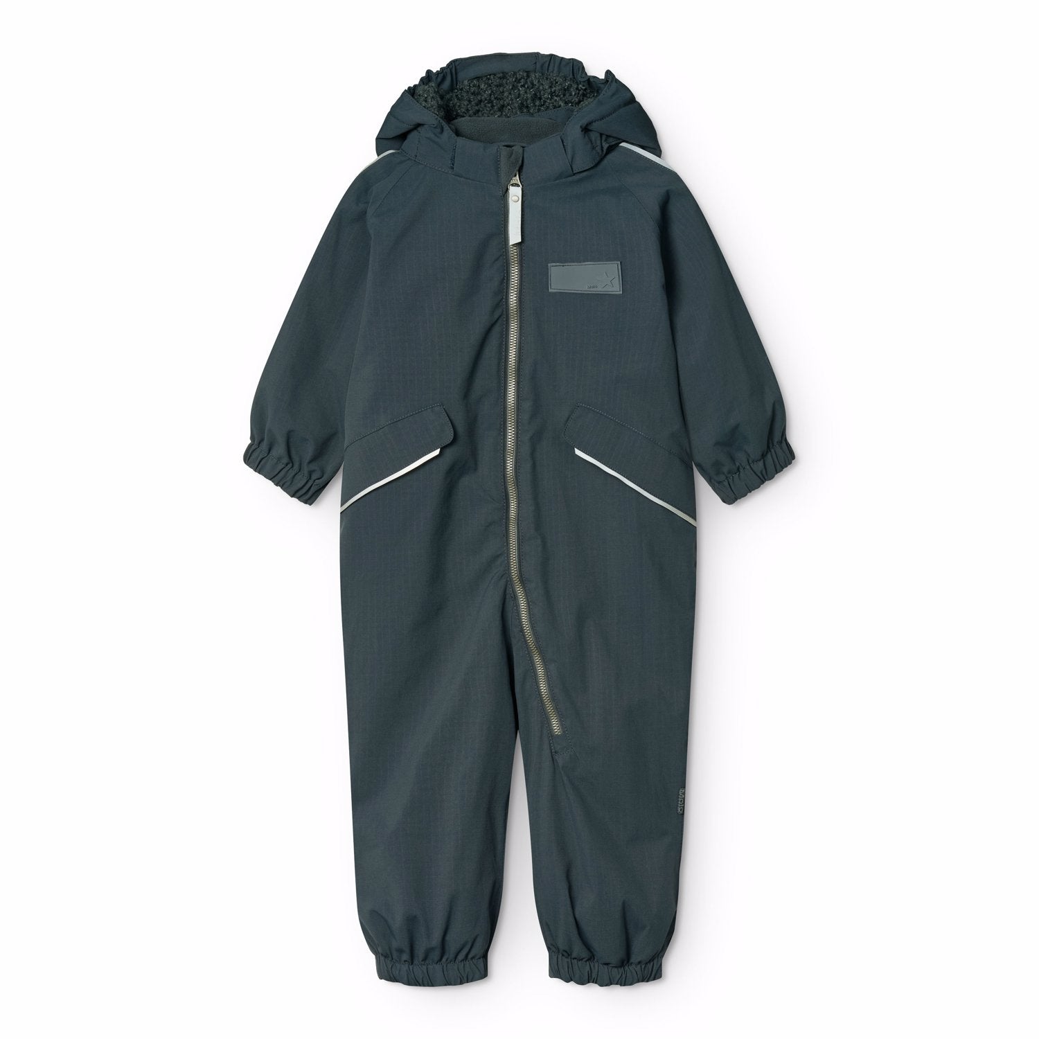 Einlitur kuldagalli frá Molo fyrir yngstu börnin. Gallinn er bæði vindþéttur og vatnsheldur. Gallinn er renndur á hlið sem auðveldar að klæða barnið í og úr og gerir barninu að auki auðveldara fyrir að að klæða sig sjálft. Límdir saumar, 15.000mm vatnsvörn og 15.000 g/m2/24klst öndun. Sterkir endurskinsborðar og endurskinsmerki gera barnið sýnilegra.