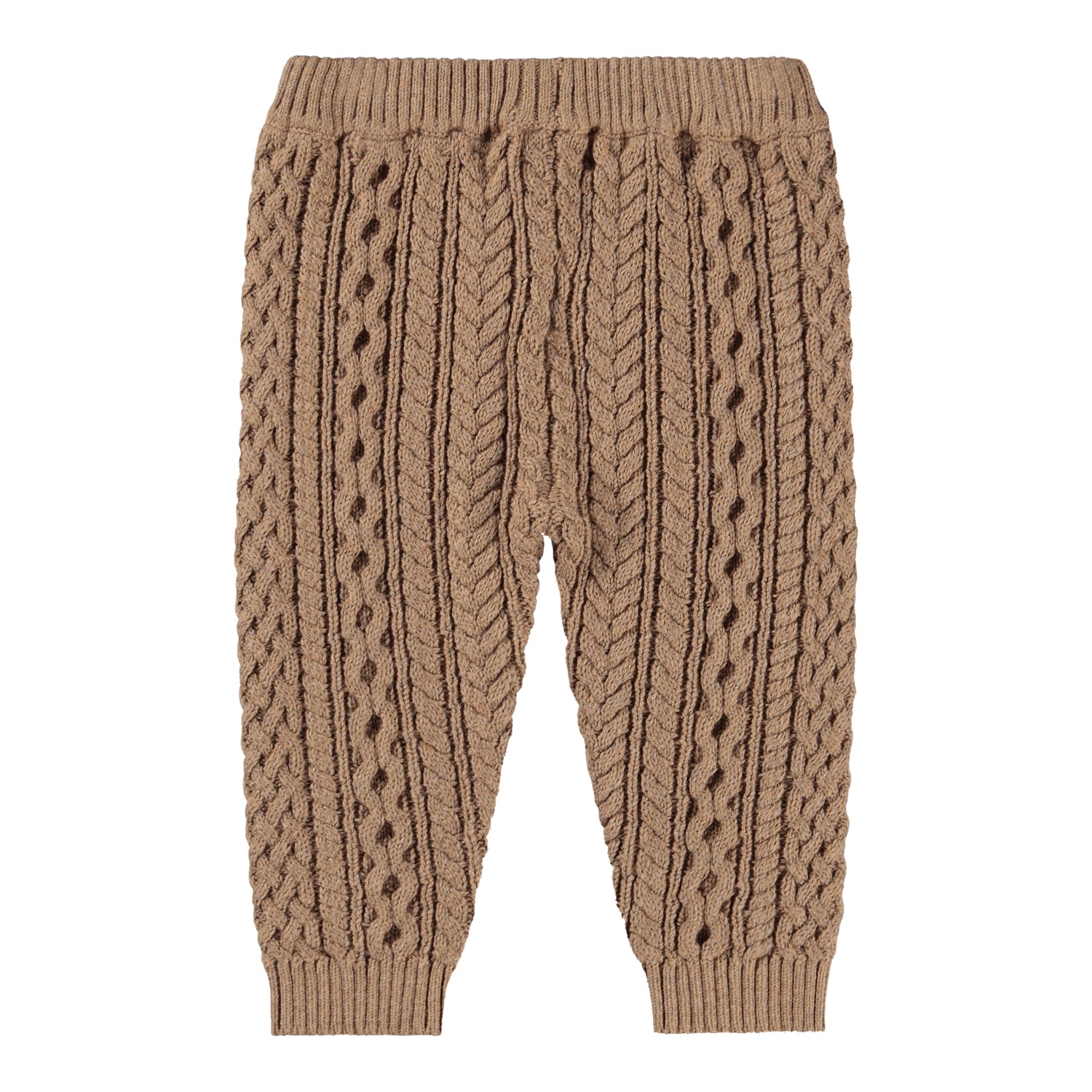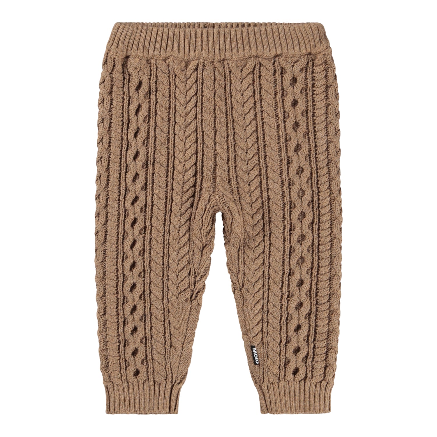 Ljós bláar, prjónabuxur frá Molo með kaðlamynstri.
