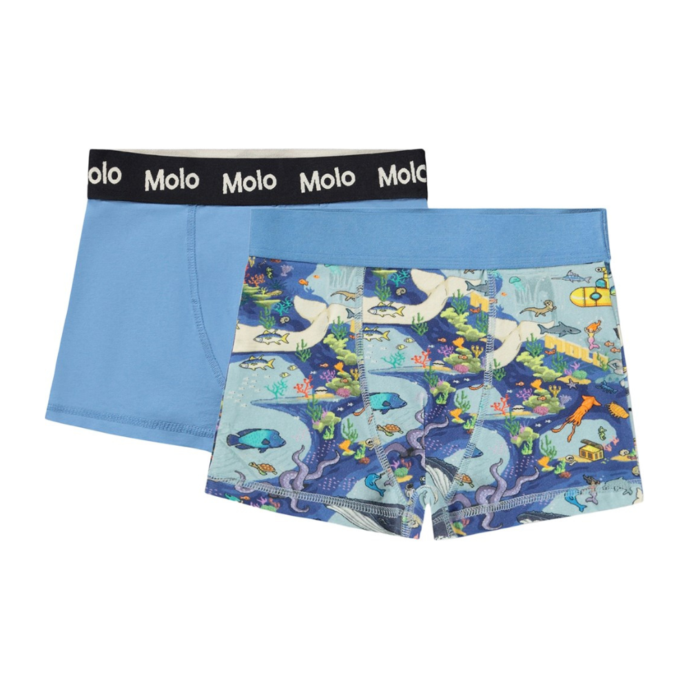 Nærbuxur frá Molo, tvennar saman í pakka. Aðrar eru mynstarður en hinar einlitar.
