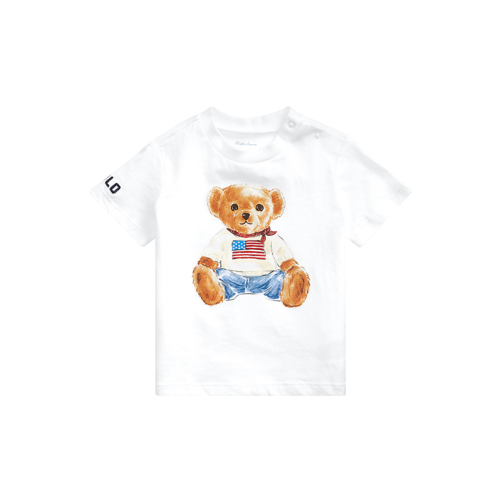 Hvítur stuttermabolur með sætri bangsamynd að framan.