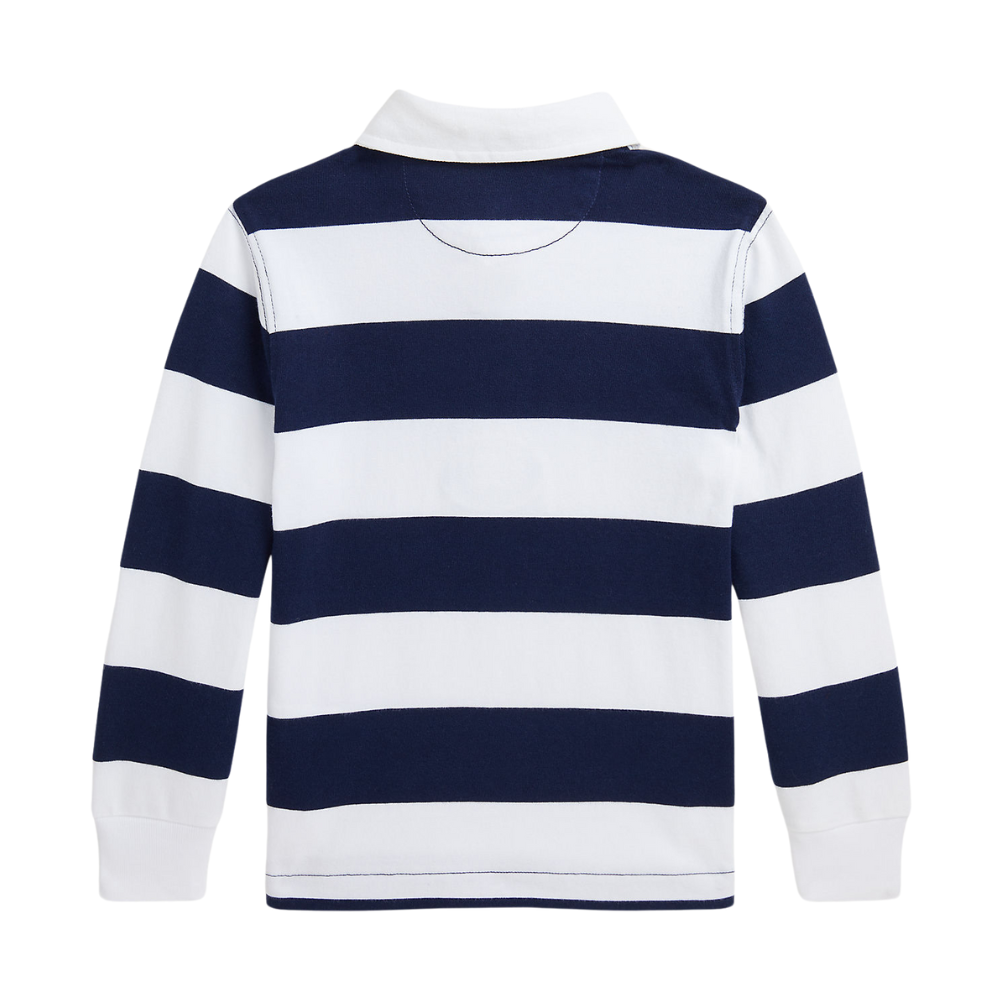 Hvítur og blár, röndóttur bolur með kraga frá Polo Ralph Lauren.