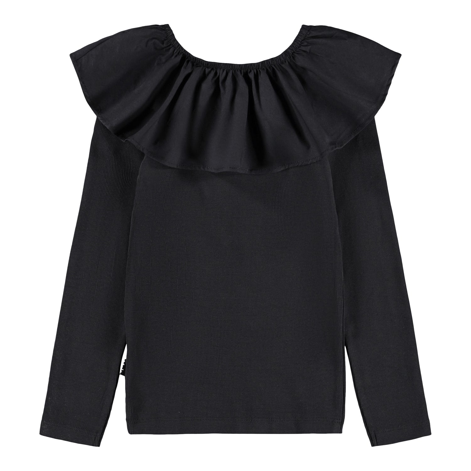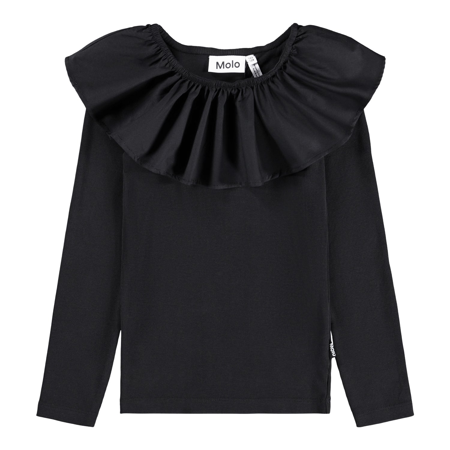 Svartur, þröngur bolur frá Molo með löngum ermum og kraga.