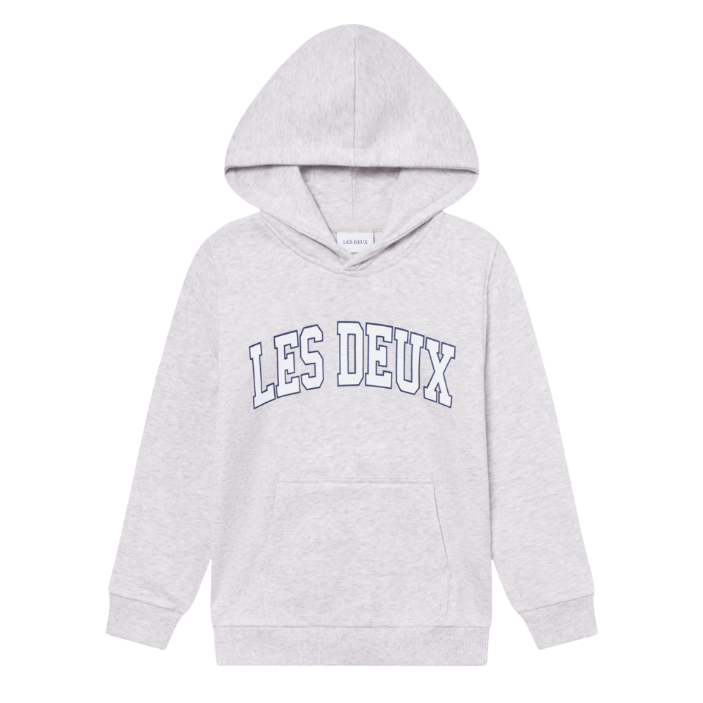 Grá hettupeysa frá Les Deux með stórum opnum vasa og stóru logo að framan.