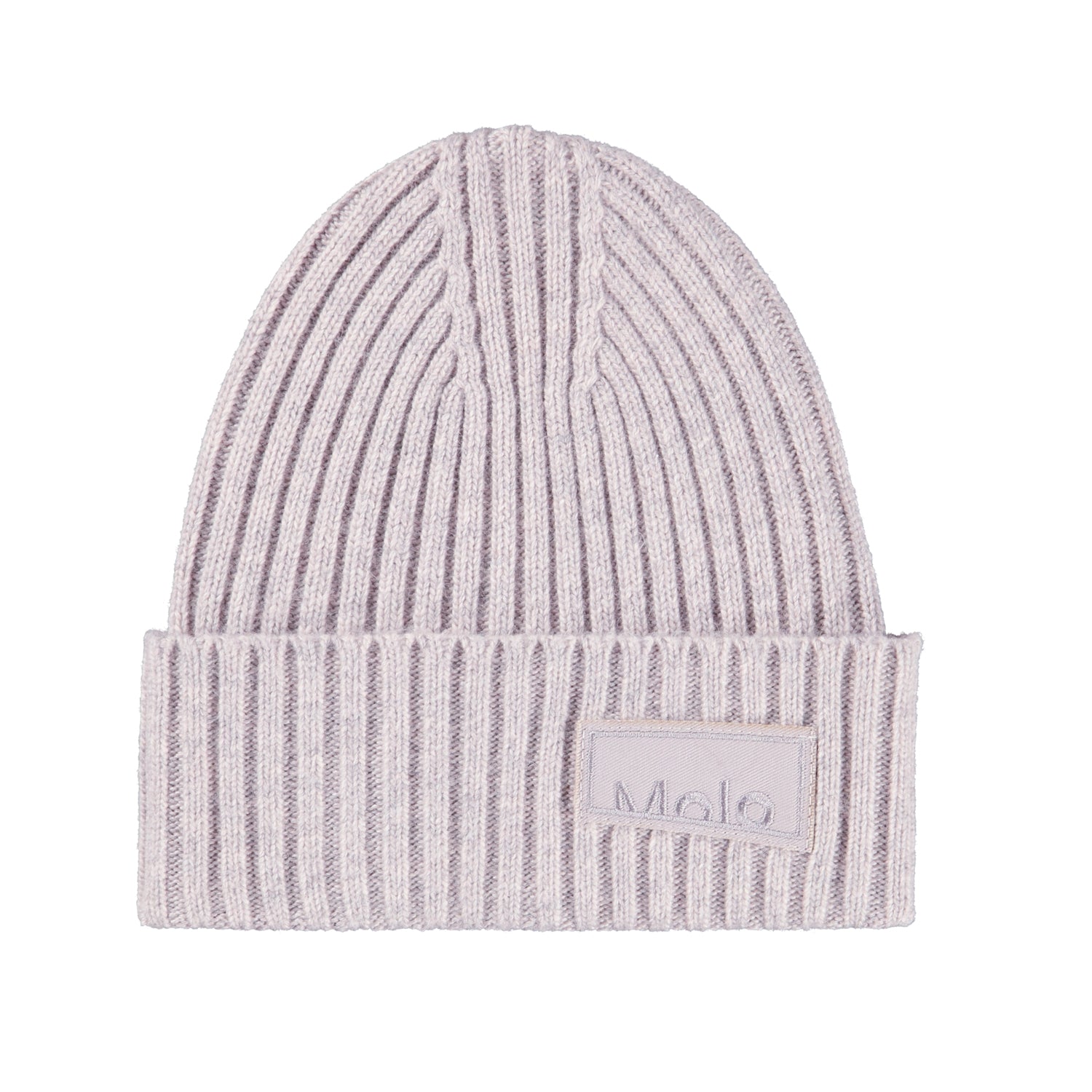 Ljós bleik prjóna húfa frá Molo með uppábroti.