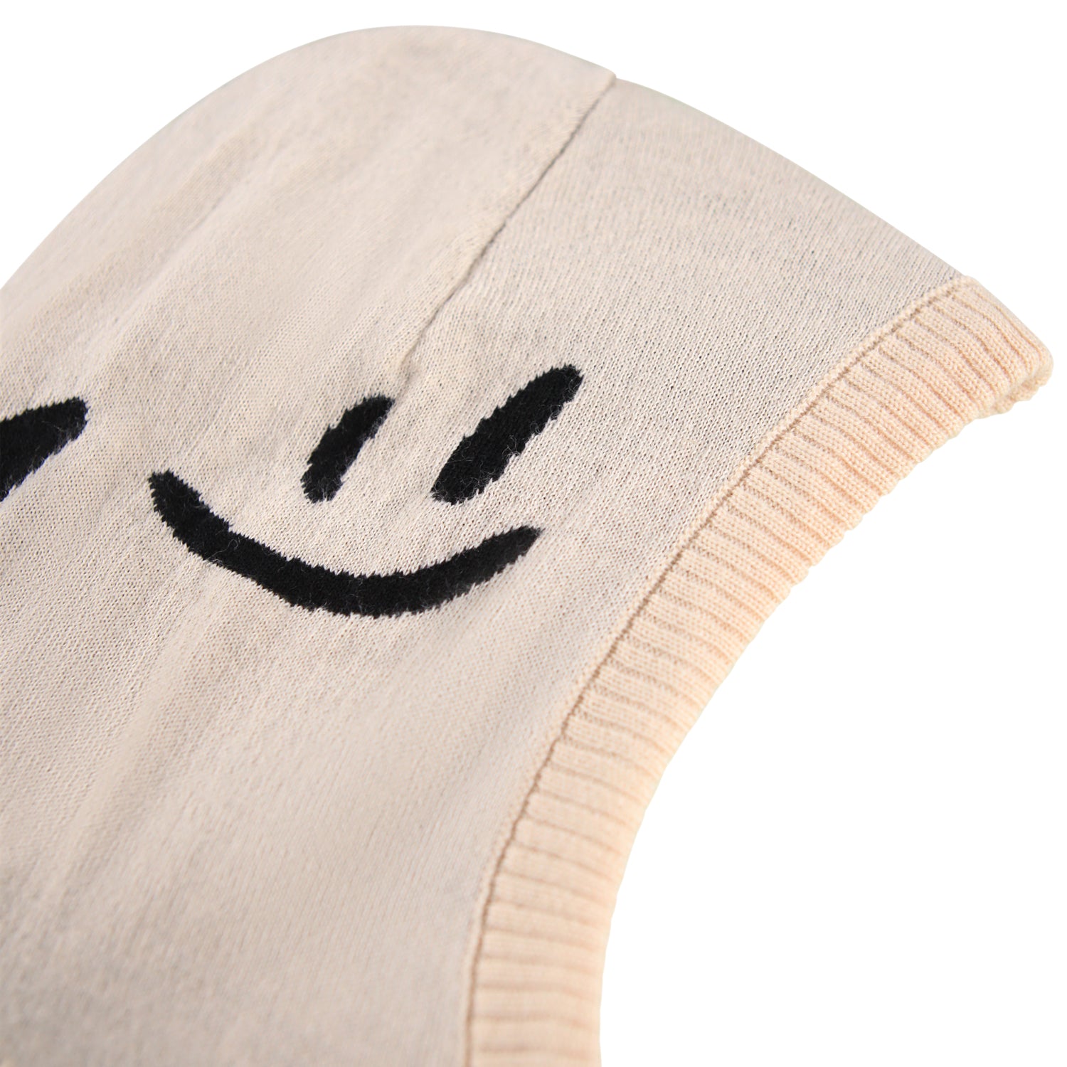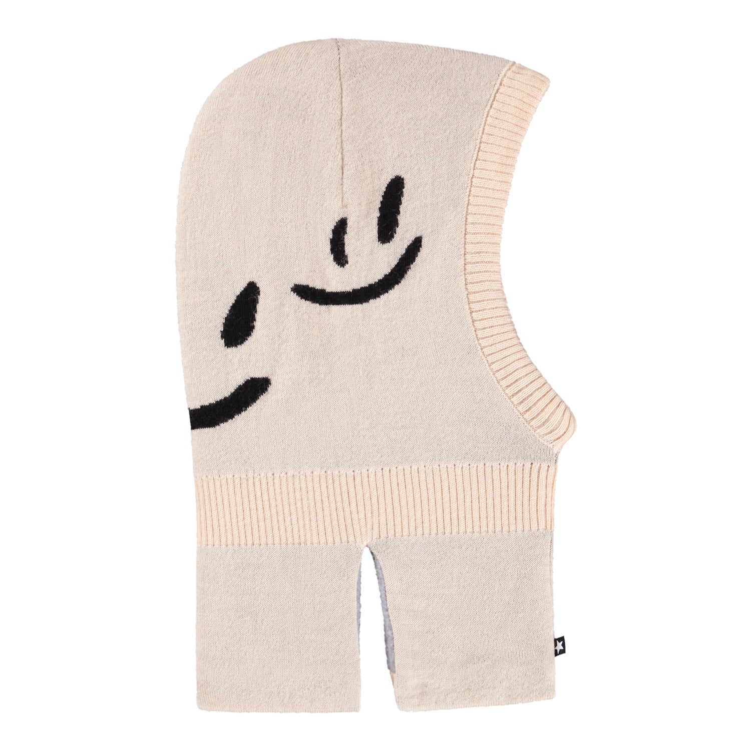 Ljós, flísfóðruð ullar lamhúshetta frá Molo með broskalla mynstri.