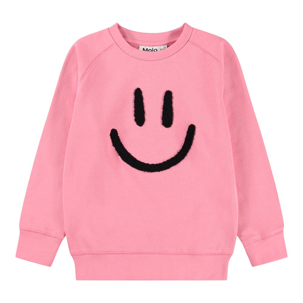 Bleik jogging peysa með hvítum broskalli að framan. Stroff við ermar og mitti.