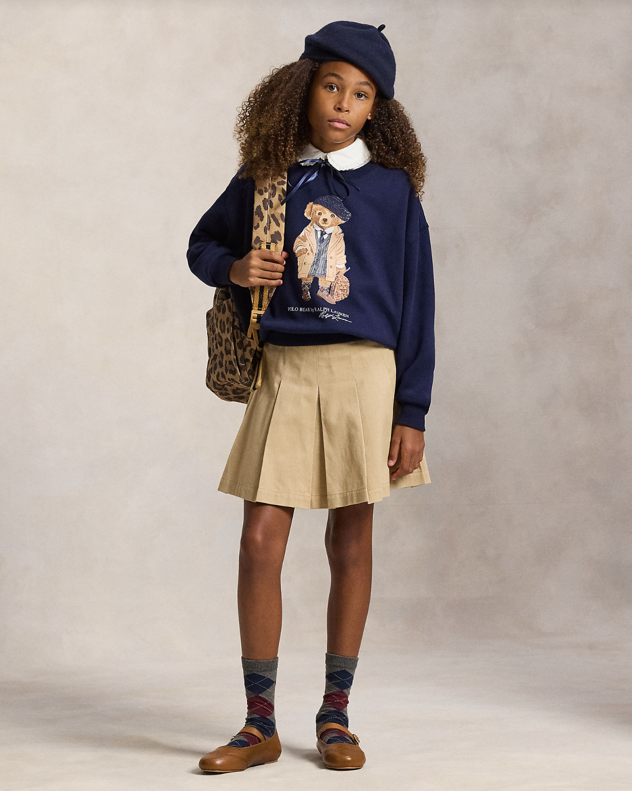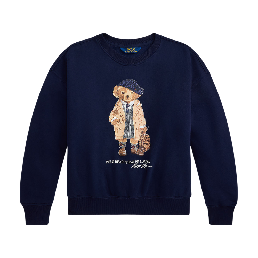 Dökk blá peysa frá Polo Ralph Lauren með bangsamynd að framan.
