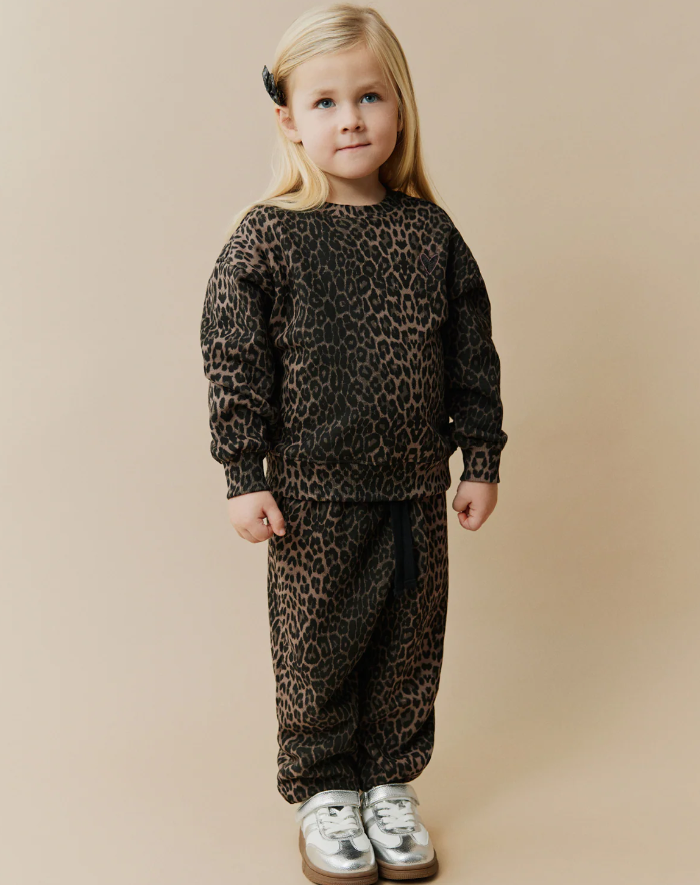 Mynstruð jogging peysa frá Sofie Schnoor með stroffi við ermar og mitti.