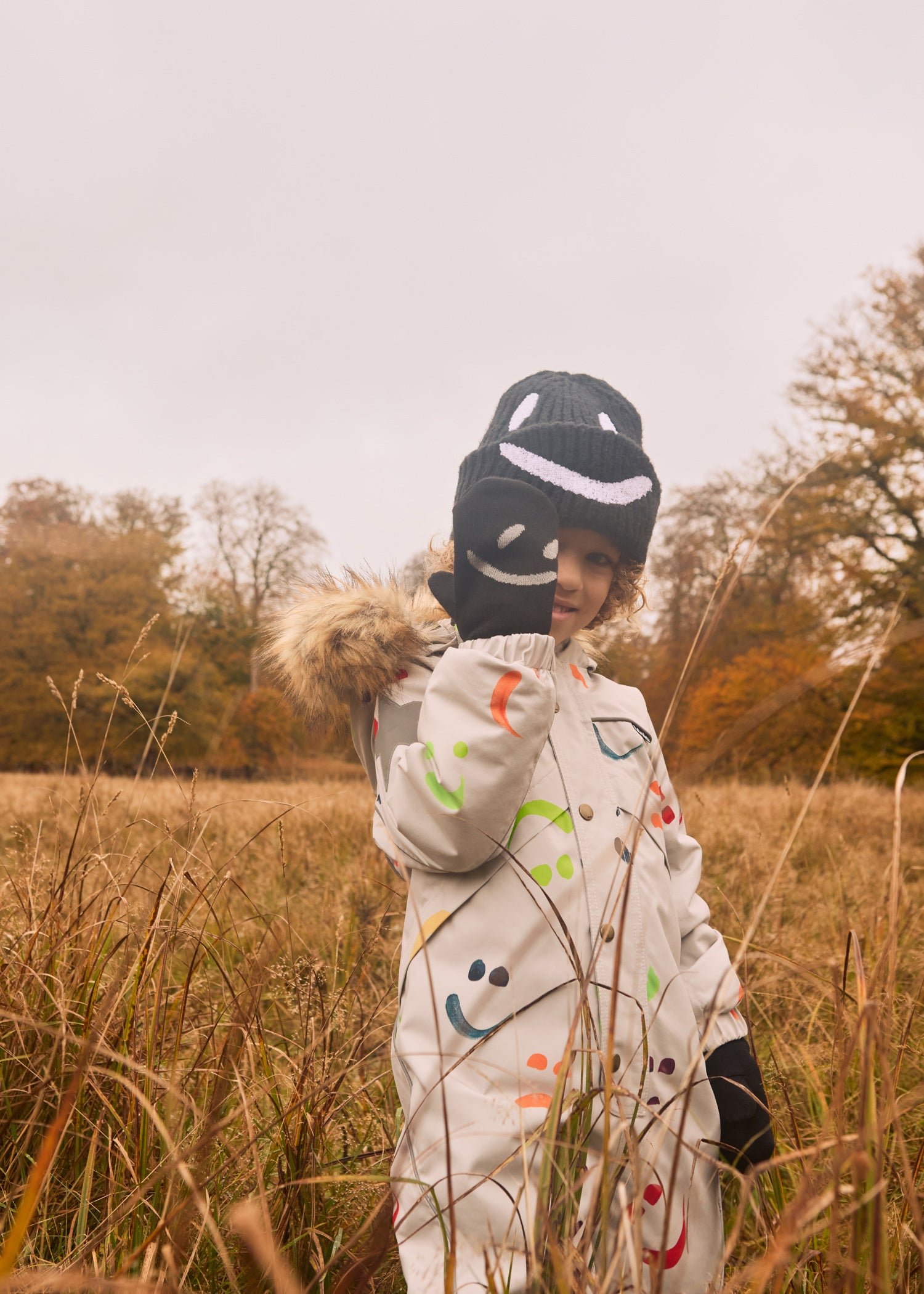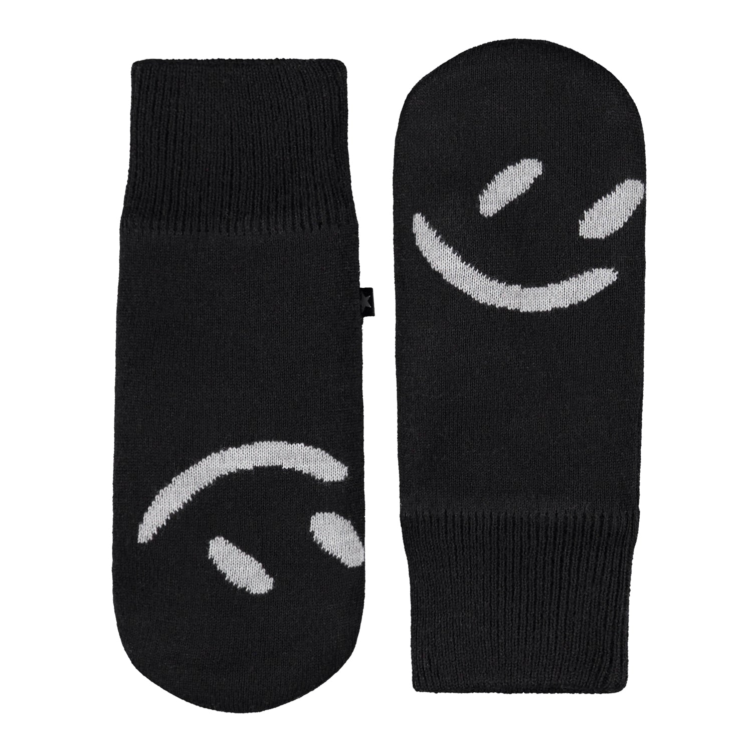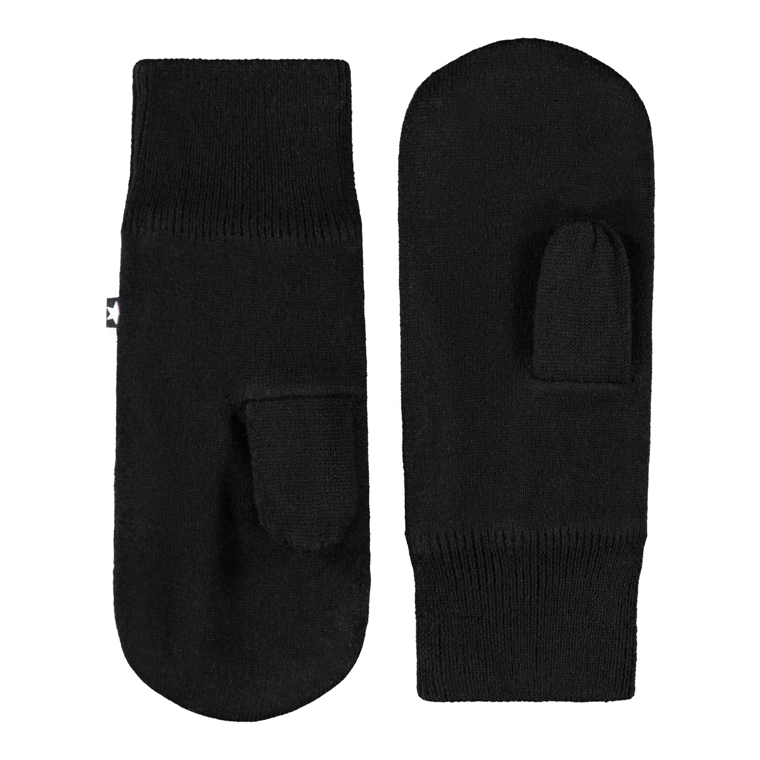 Svartir, flísfóðraðir ullarvettlingar frá Molo með mynstri.
