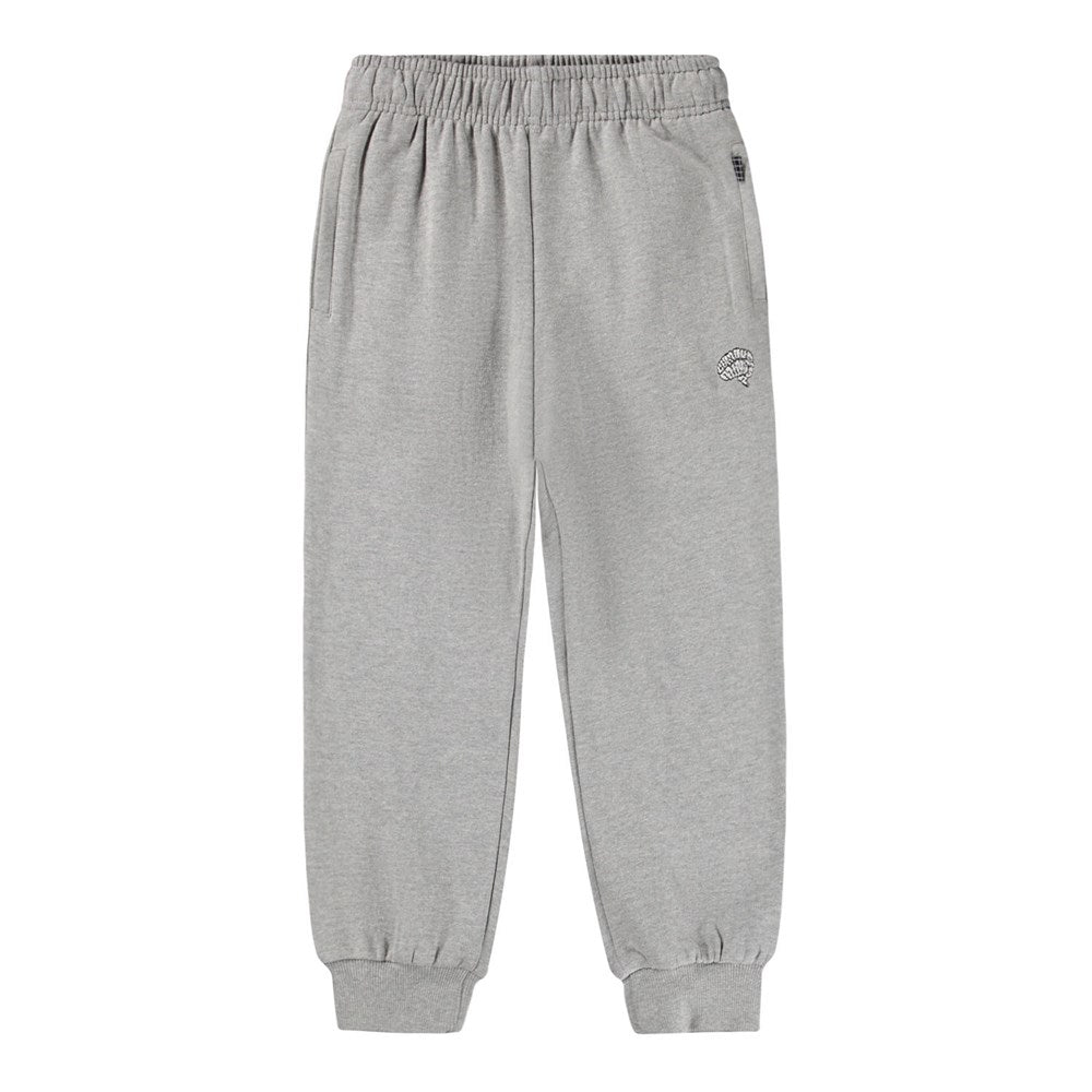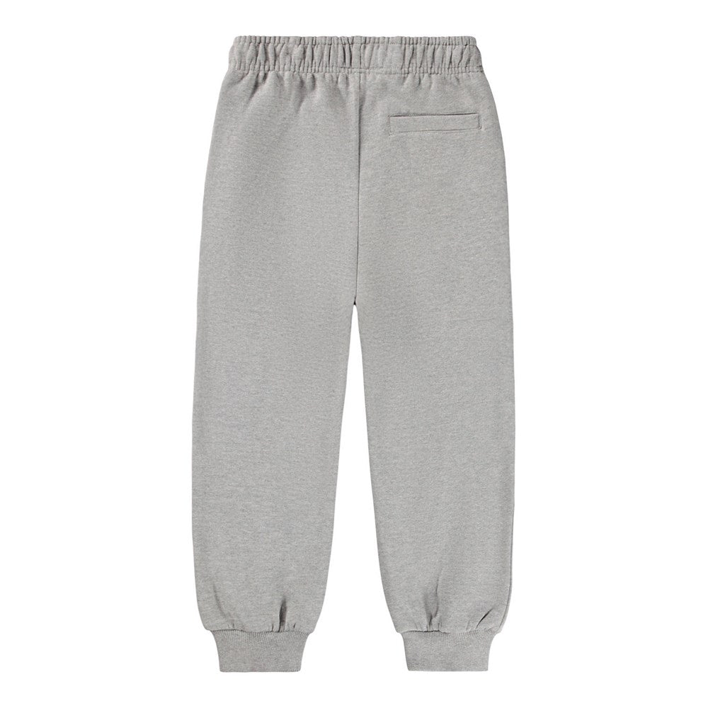 Einlitar, gráar joggingbuxur frá Molo. Buxurnar eru bundnar í mittið með stroff við skálmar.