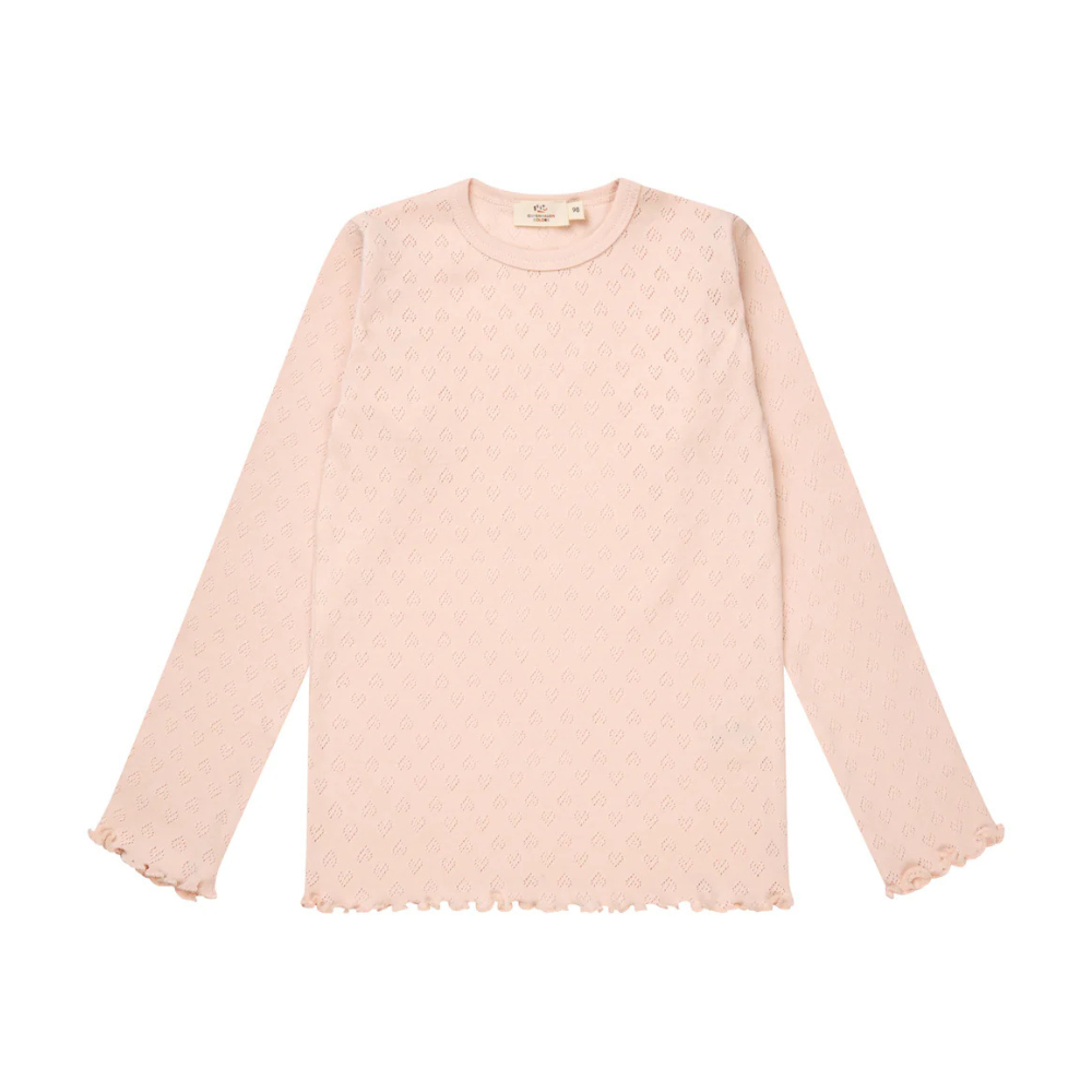 Ljós bleikur langerma bolur frá Copenhagen Colors með smáu gatamynstri.