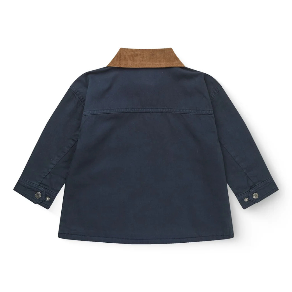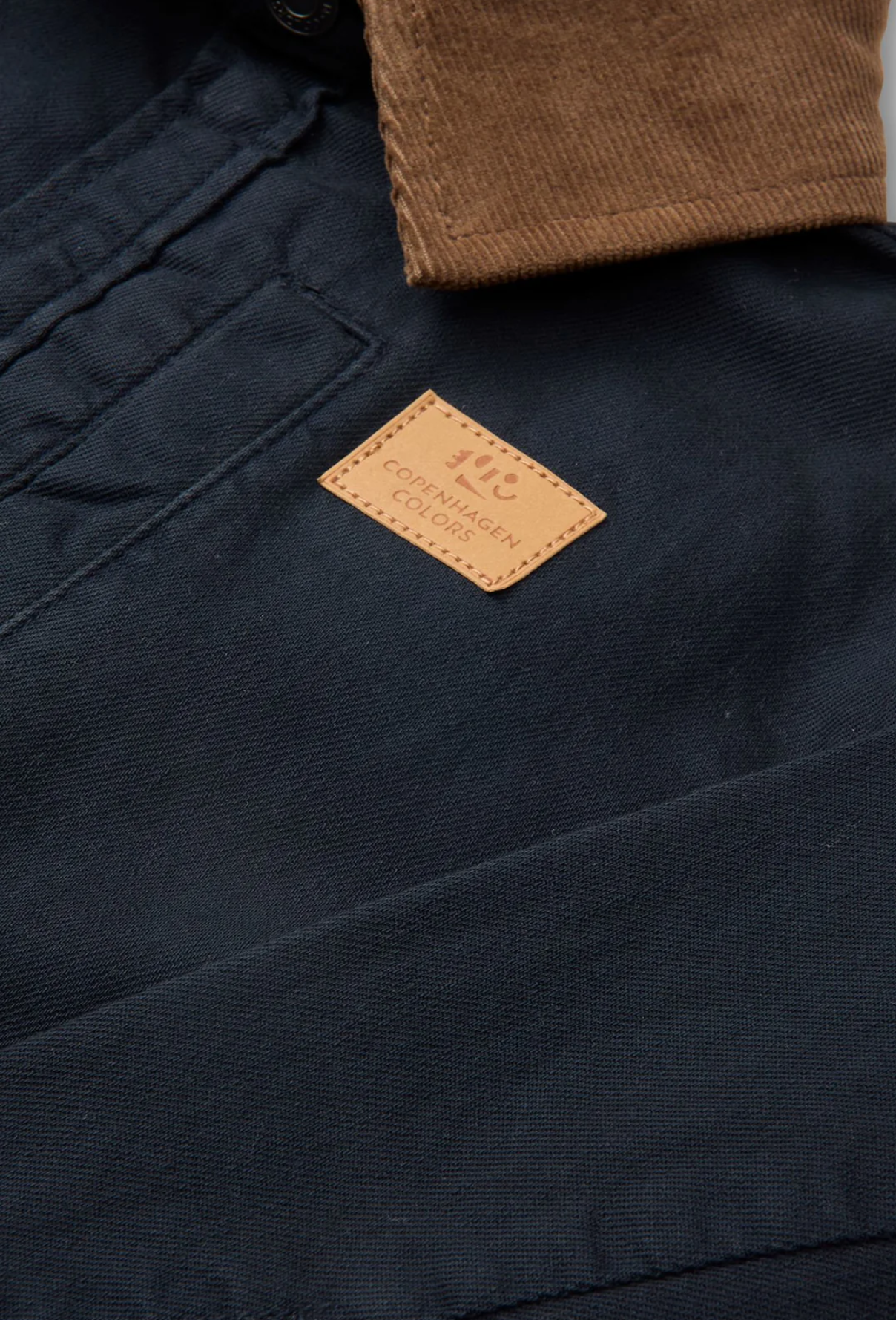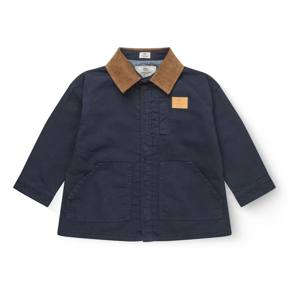 Dökk blár jakki frá Copenhagen Colors með brúnum flauels jakka.