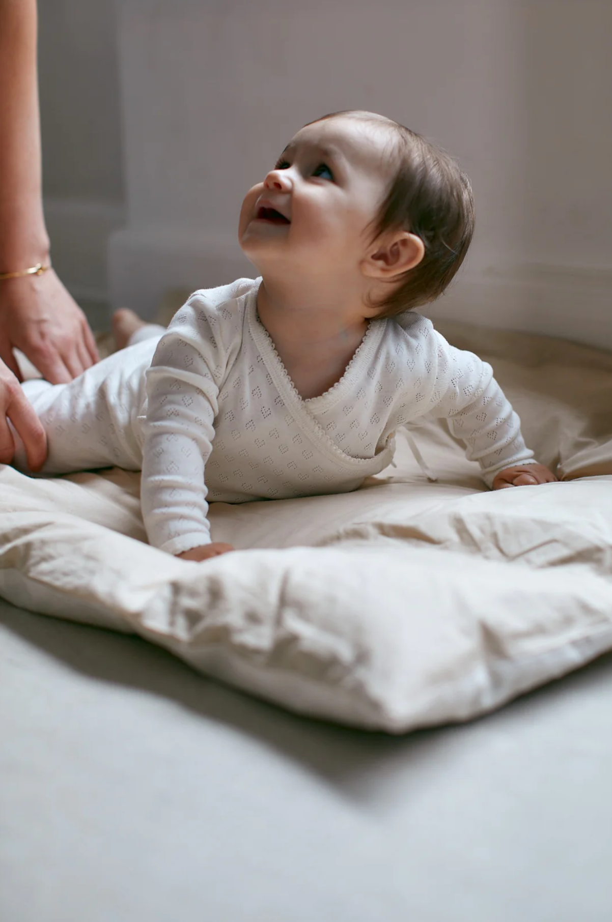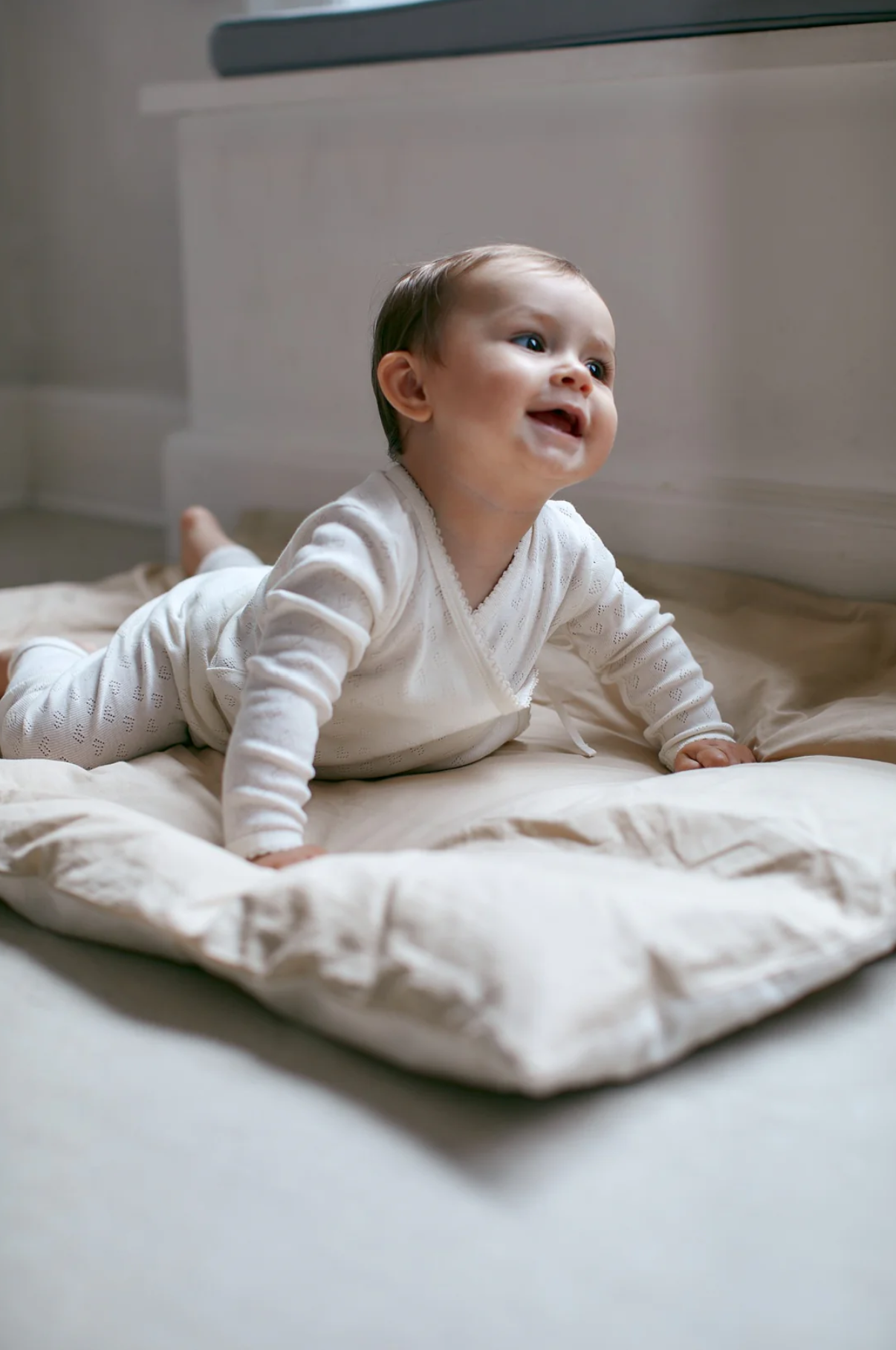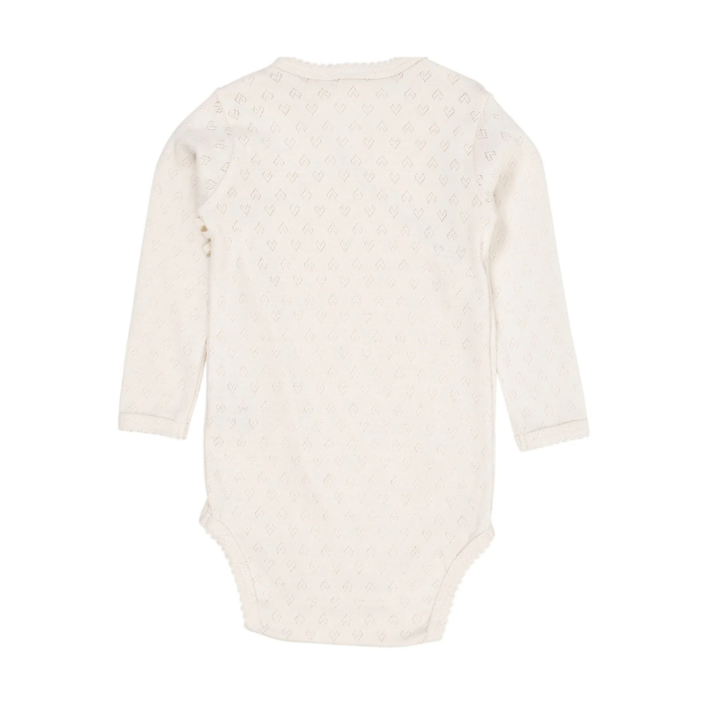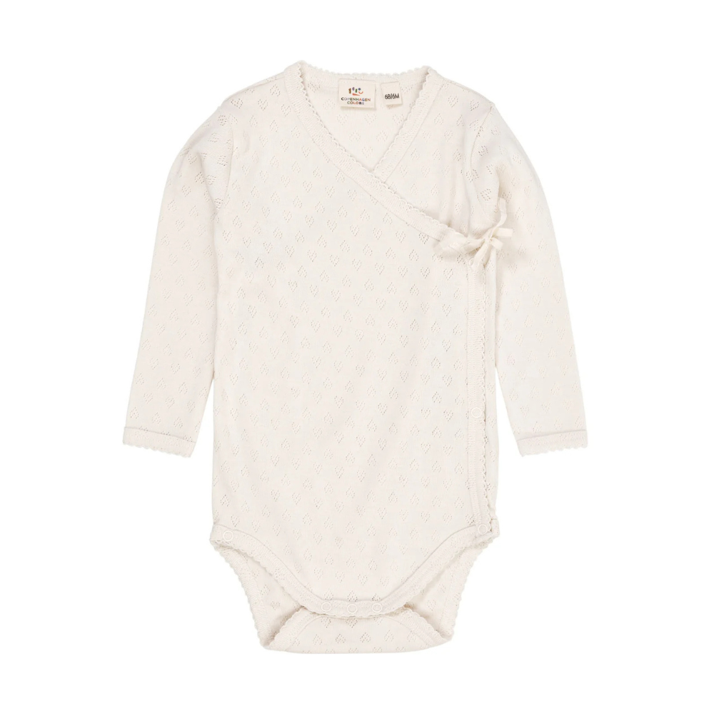 Ljós samfella frá Copenhagen Colors með smáu gatamynstri. Samfellan er bæði smellt og bundin að framan.