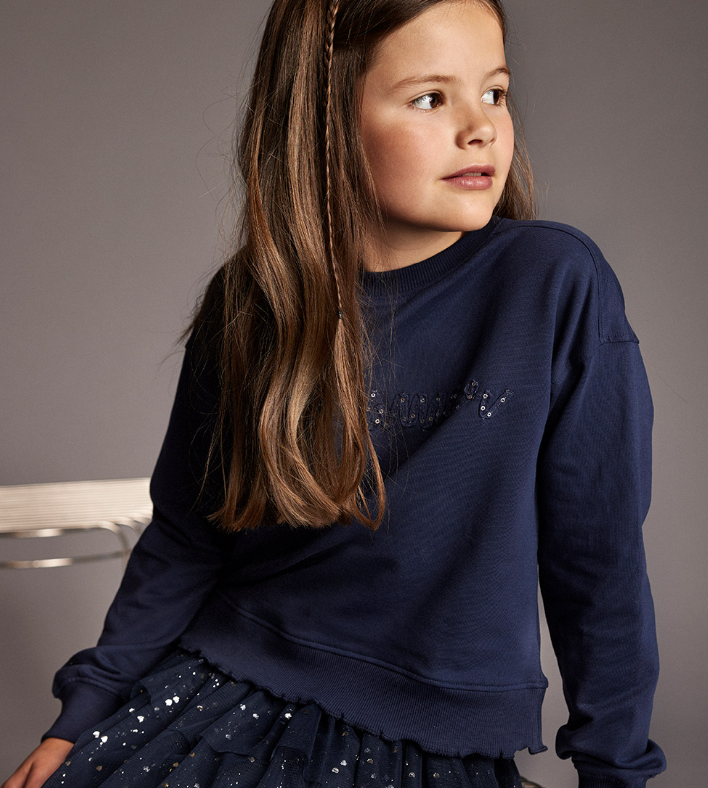 Fallegt, dökk blátt pils frá Creamie með teygju í mittið.