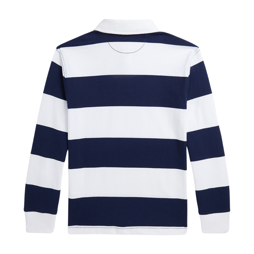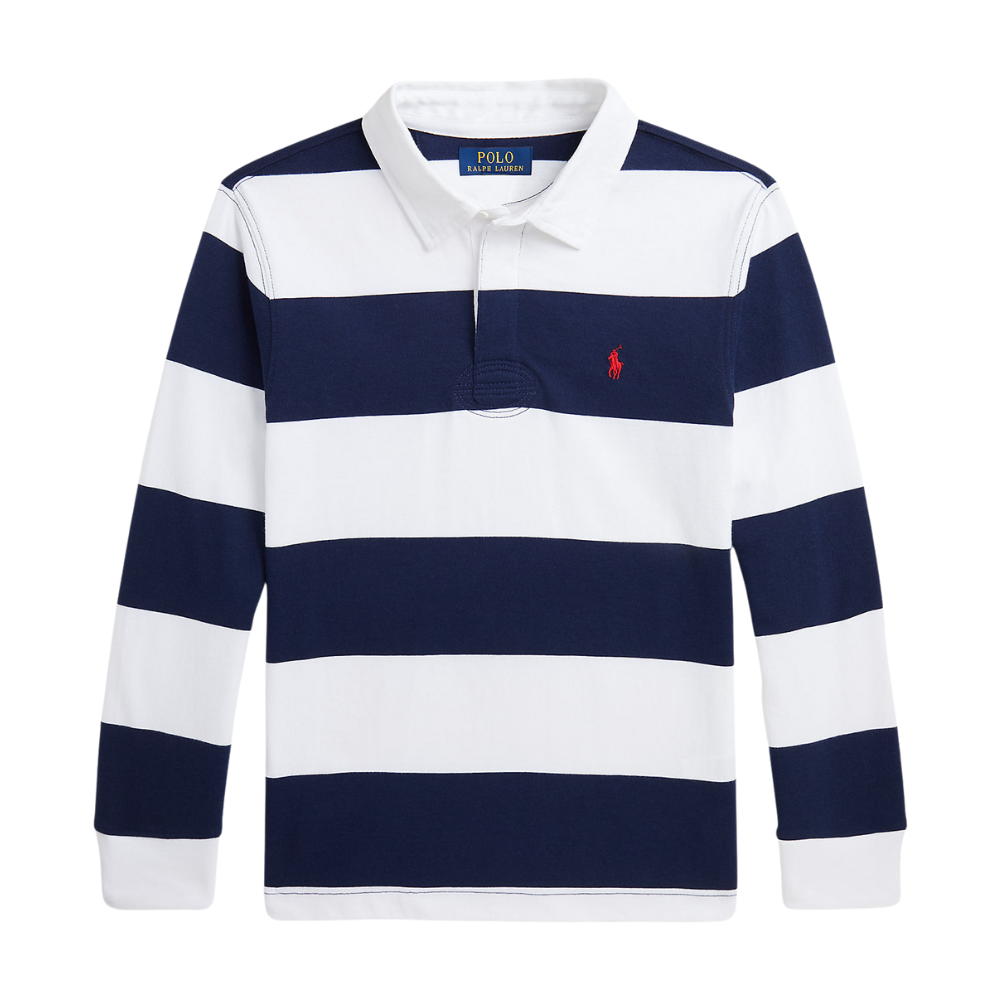 Hvítur og blár, röndóttur bolur með kraga frá Polo Ralph Lauren.