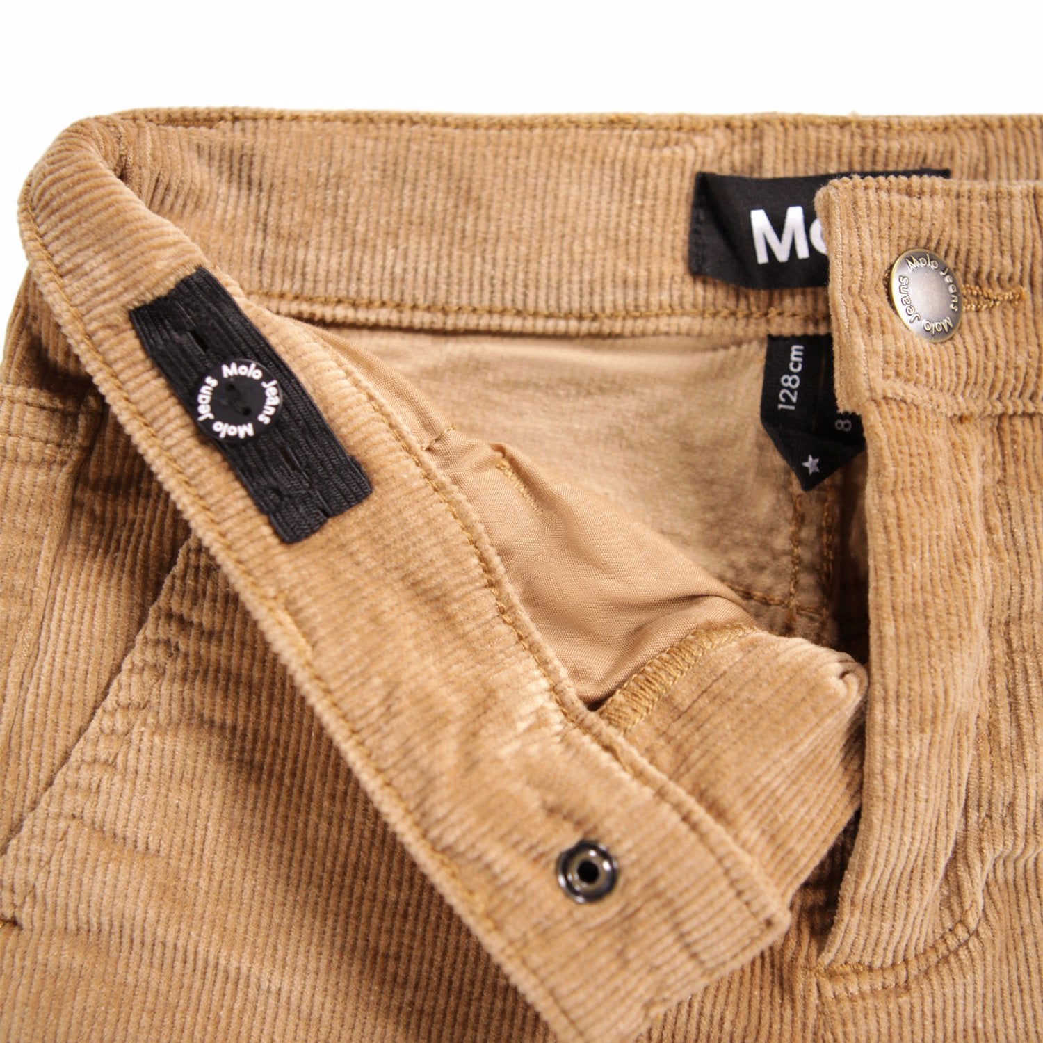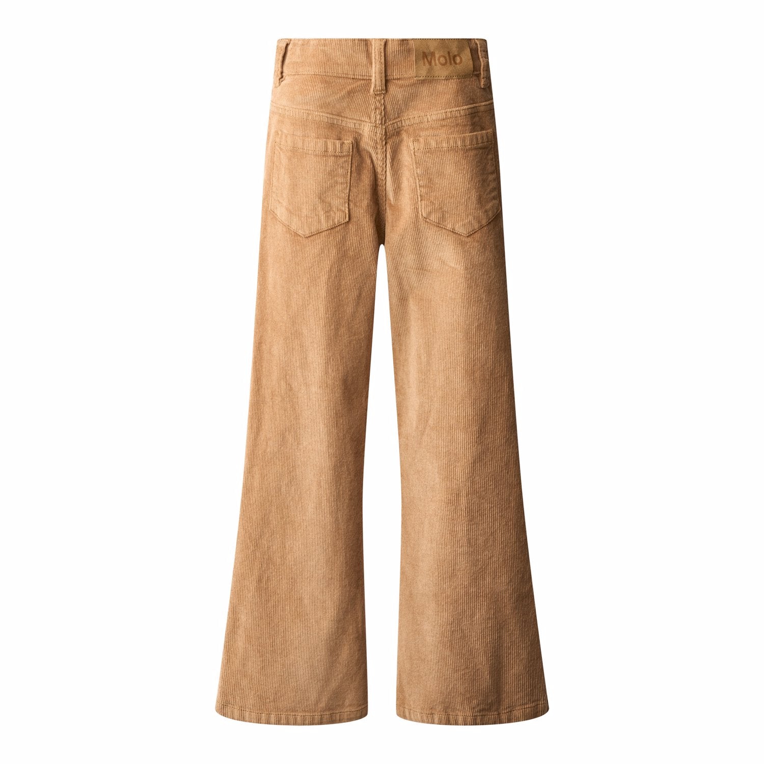 Ljós brúnar, útvíðar velour buxur frá Molo.