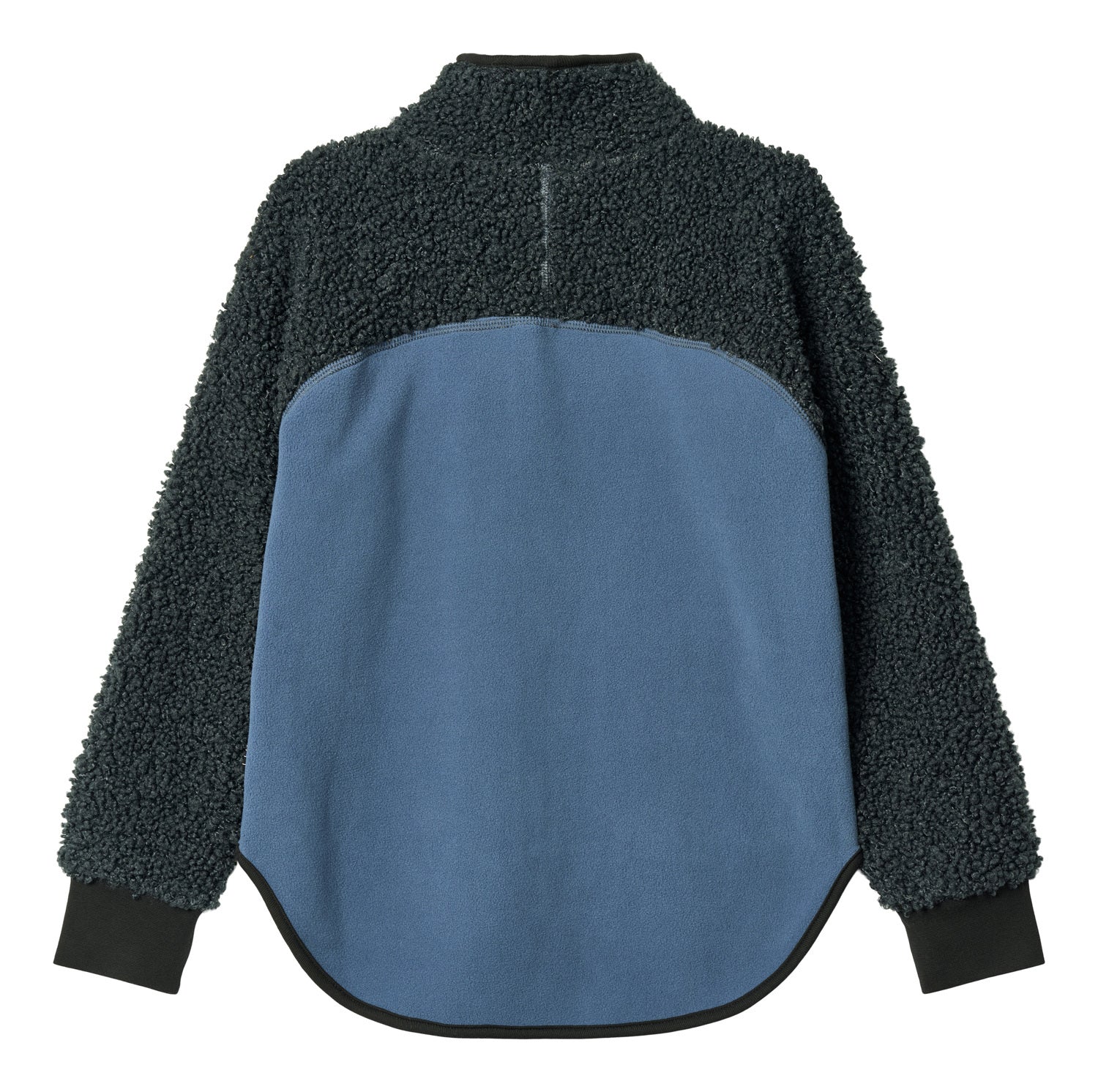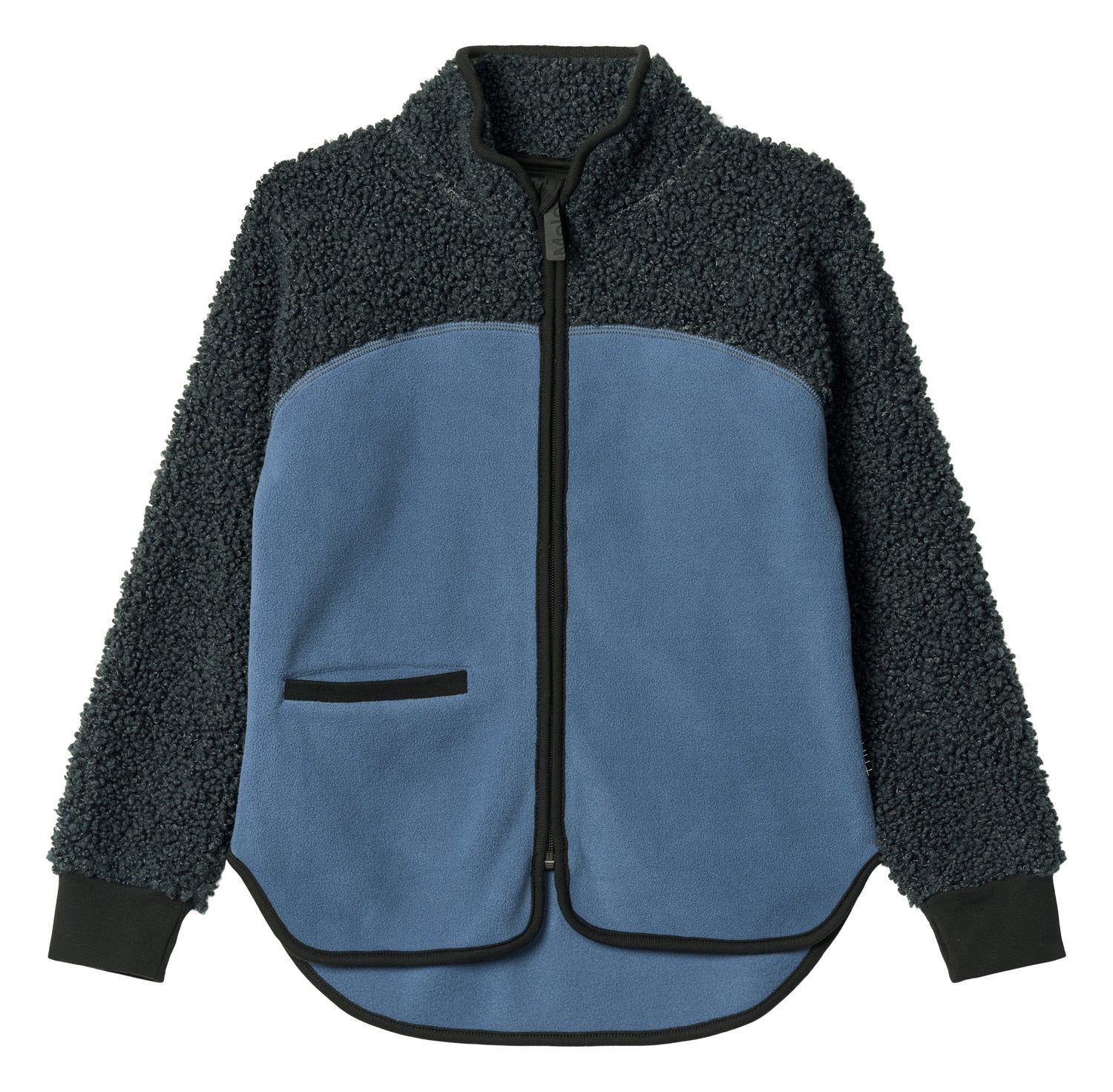 Blá, rennd flíspeysa frá Molo með stroffi við ermar.