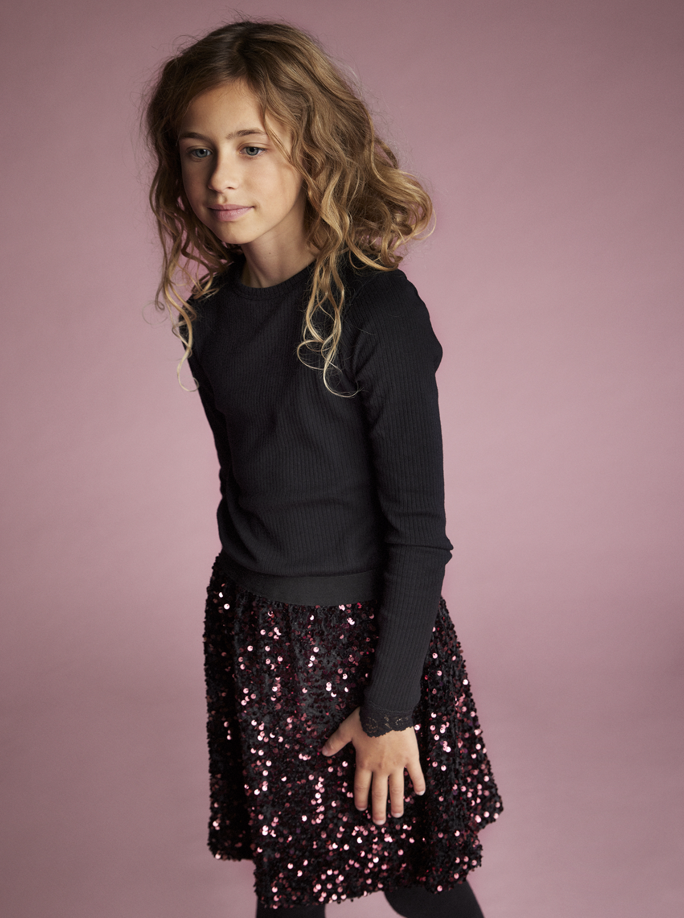 Vínrautt pallíettu pils frá Creamie með teygju í mittið.