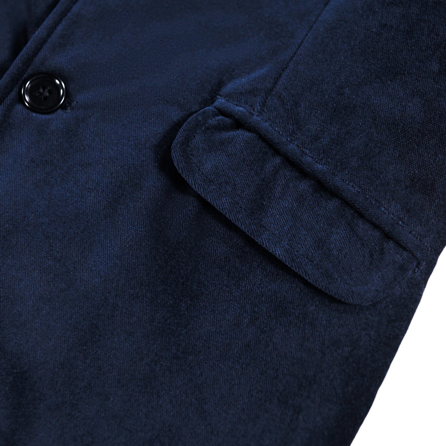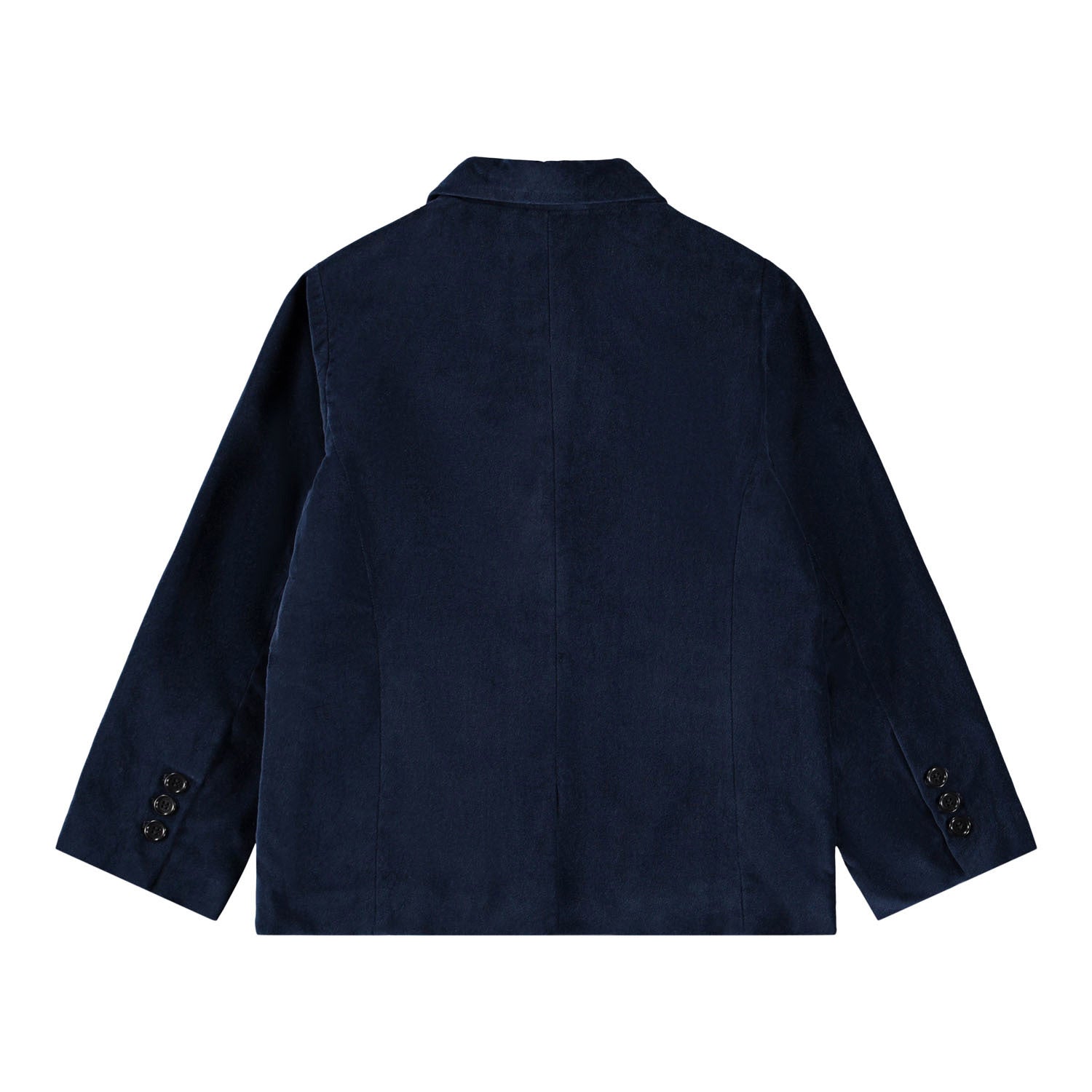 Fallegur, dökk blár flauelsjakki frá Molo. Jakkinn er hnepptur og með kraga. Vasar að framan.