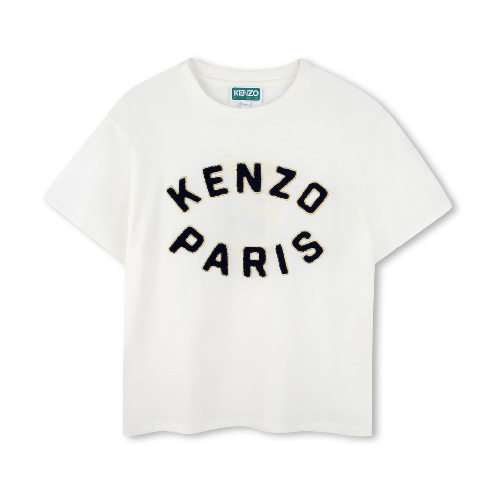 Ljós stuttermabolur frá Kenzo með stóru logo að framan.