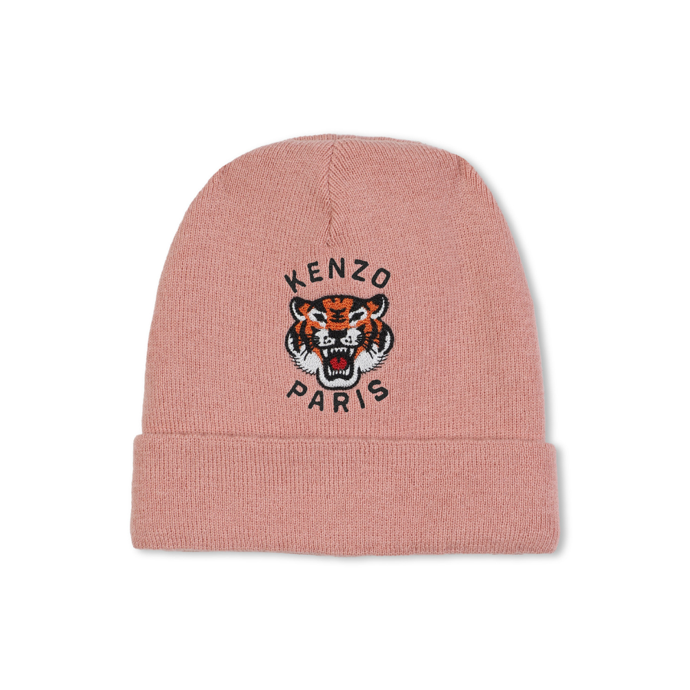 Ljósbleik húfa frá Kenzo með stóru logo að framan.