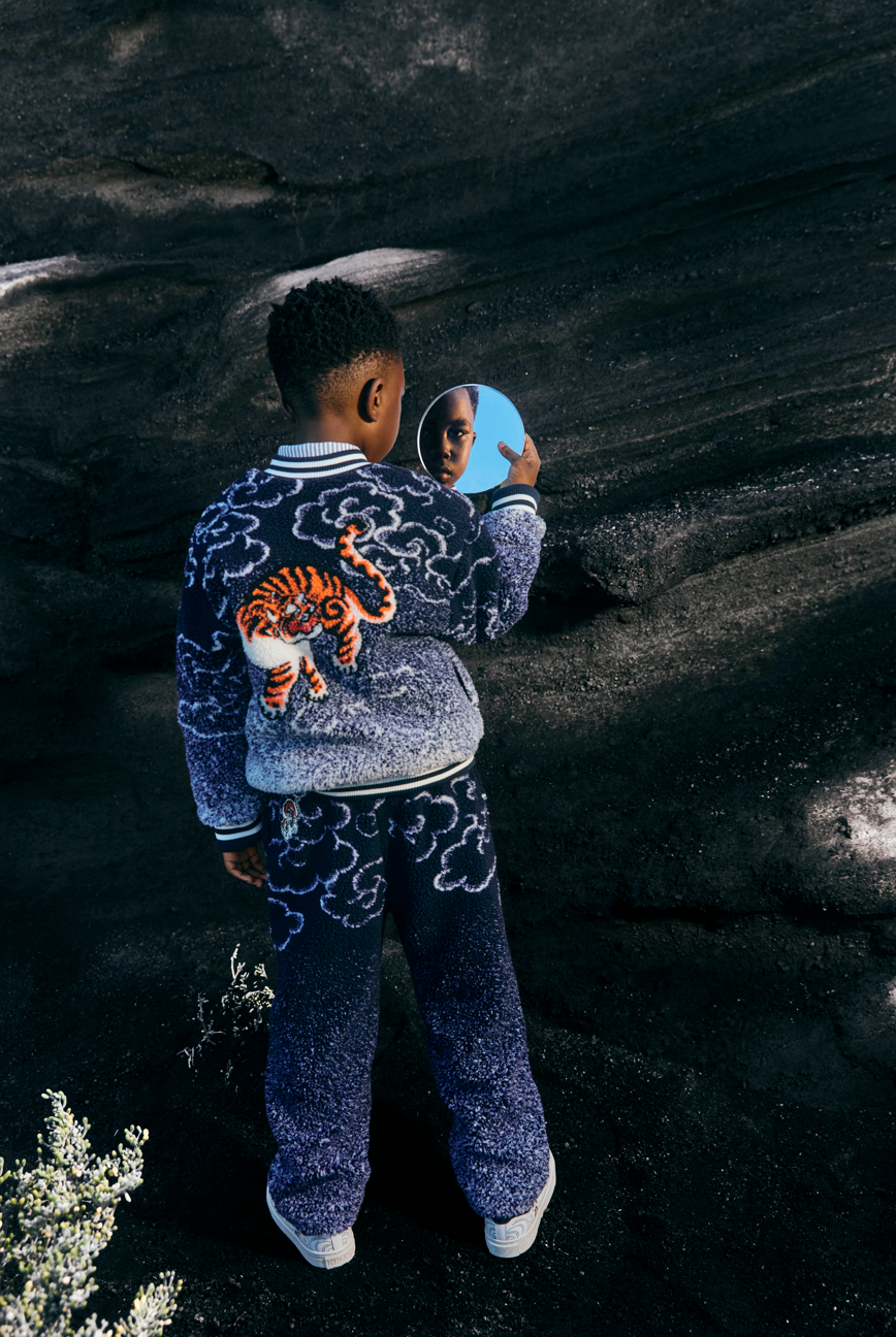 Falleg, rennd flíspeysa frá Kenzo með mynd að aftan.