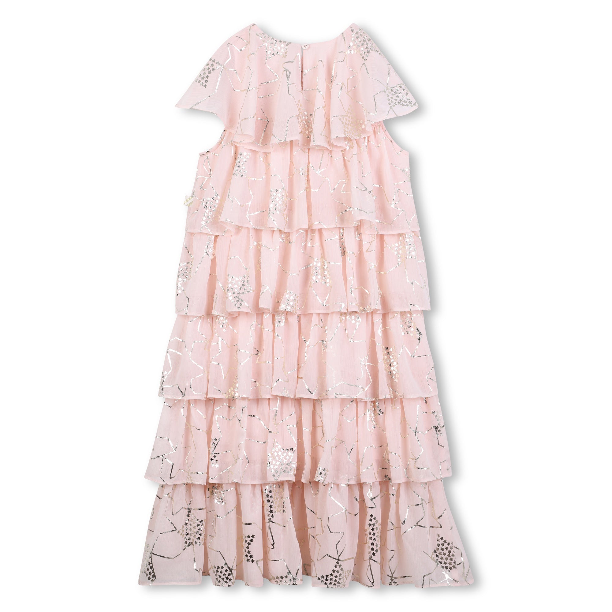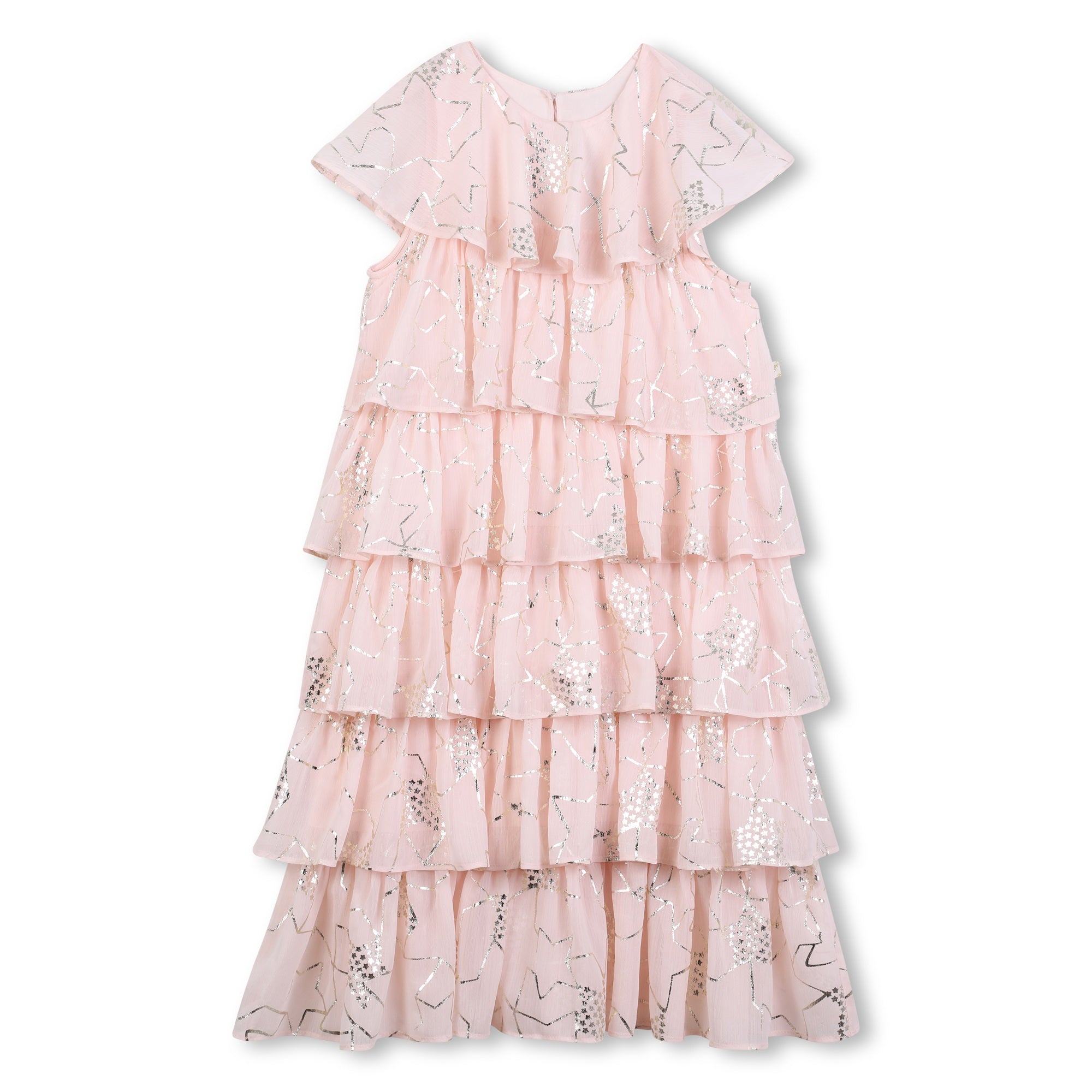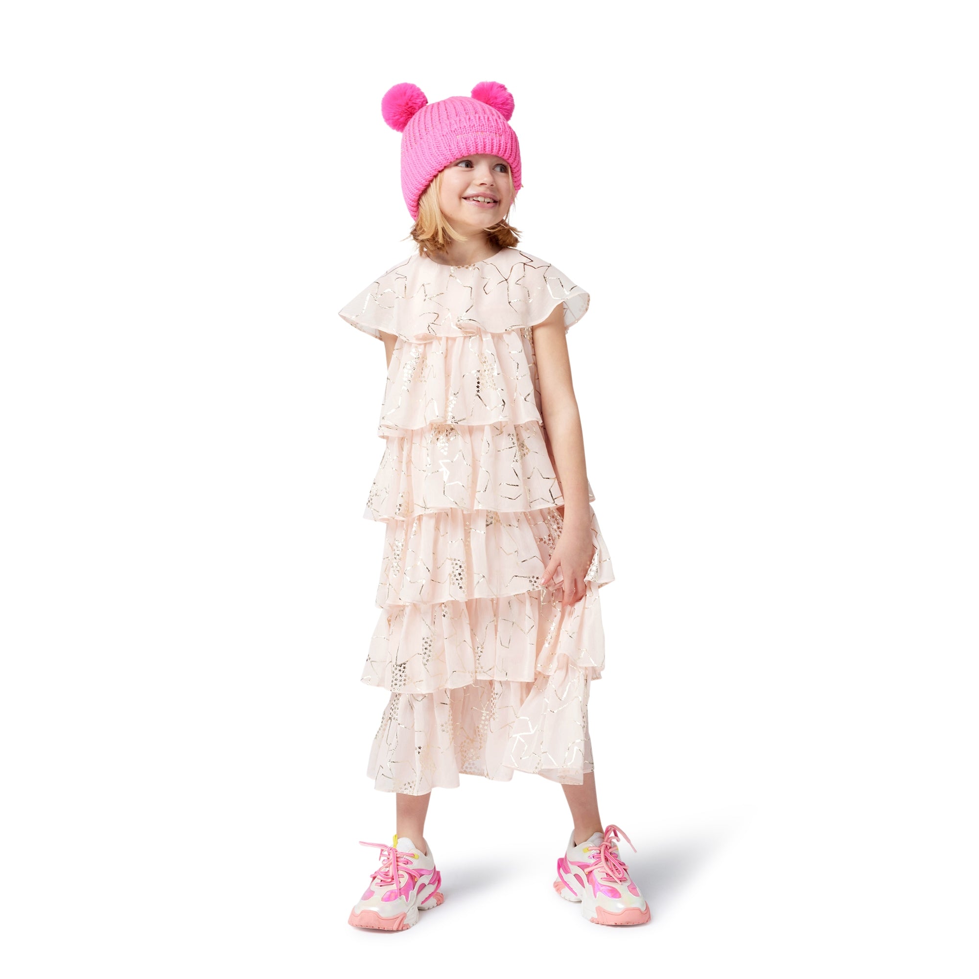 Fallegur, ljósbleikur og ermalaus kjóll frá Billieblush. Kjóllinn er með glansandi silfur mynstri.