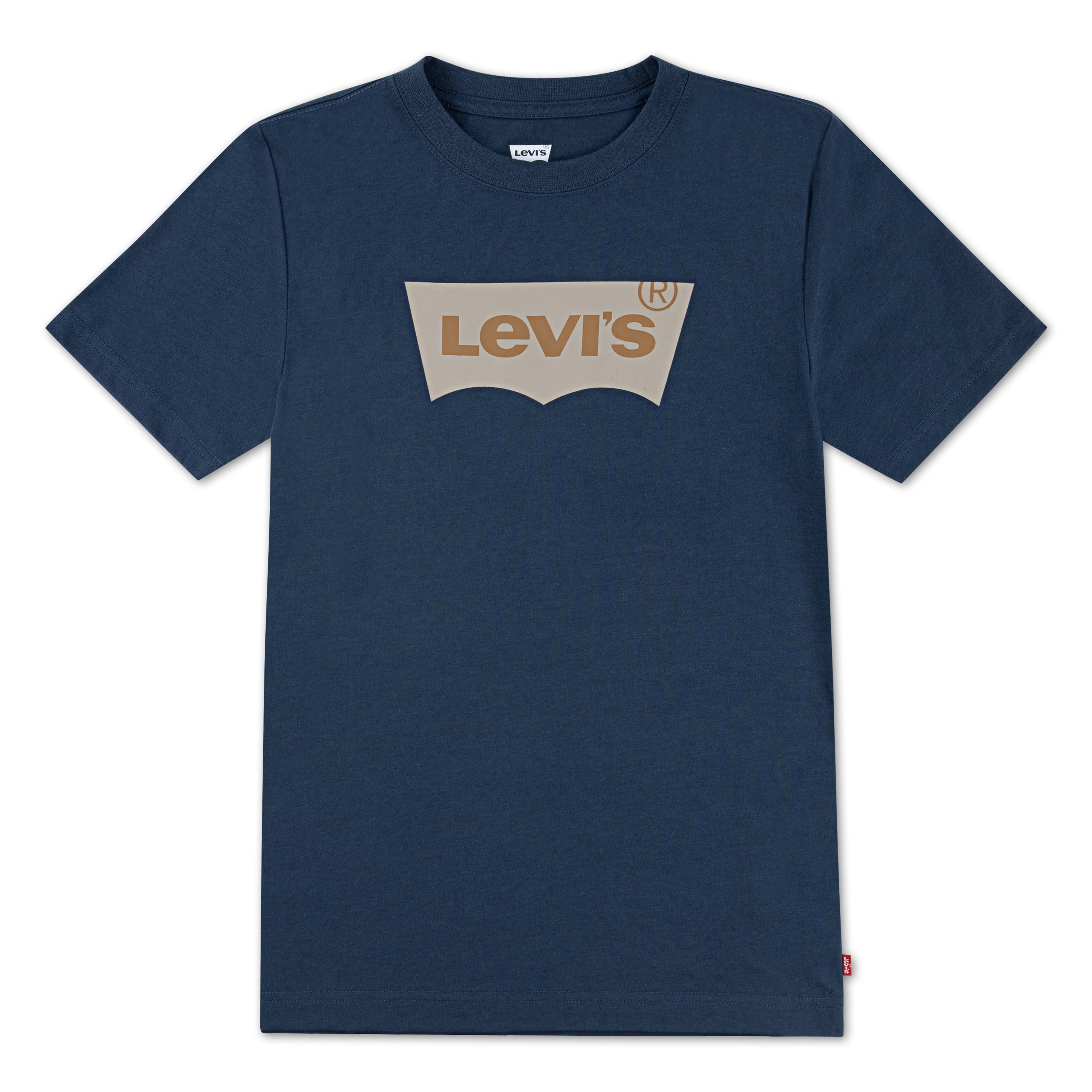 Dökk blár stuttermabolur frá Levi's með stóru logo að framan.