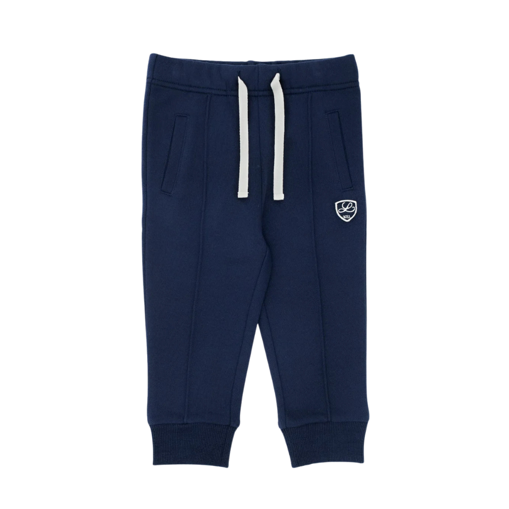 Bláar, mjúkar joggingbuxur frá Livly. Buxurnar eru með teygju í mittið.
