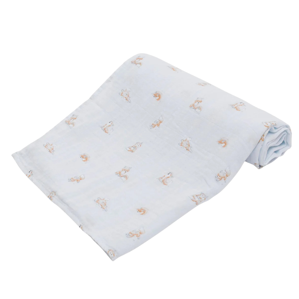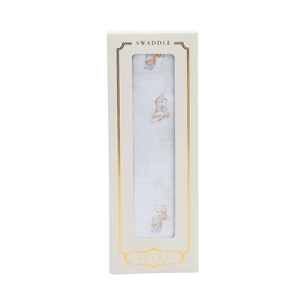 Dásmalega mjúkt taubleiu teppi frá Livly. Teppið er fallega myndskreytt með myndum í bláum lit. Stærð 120x120 cm.