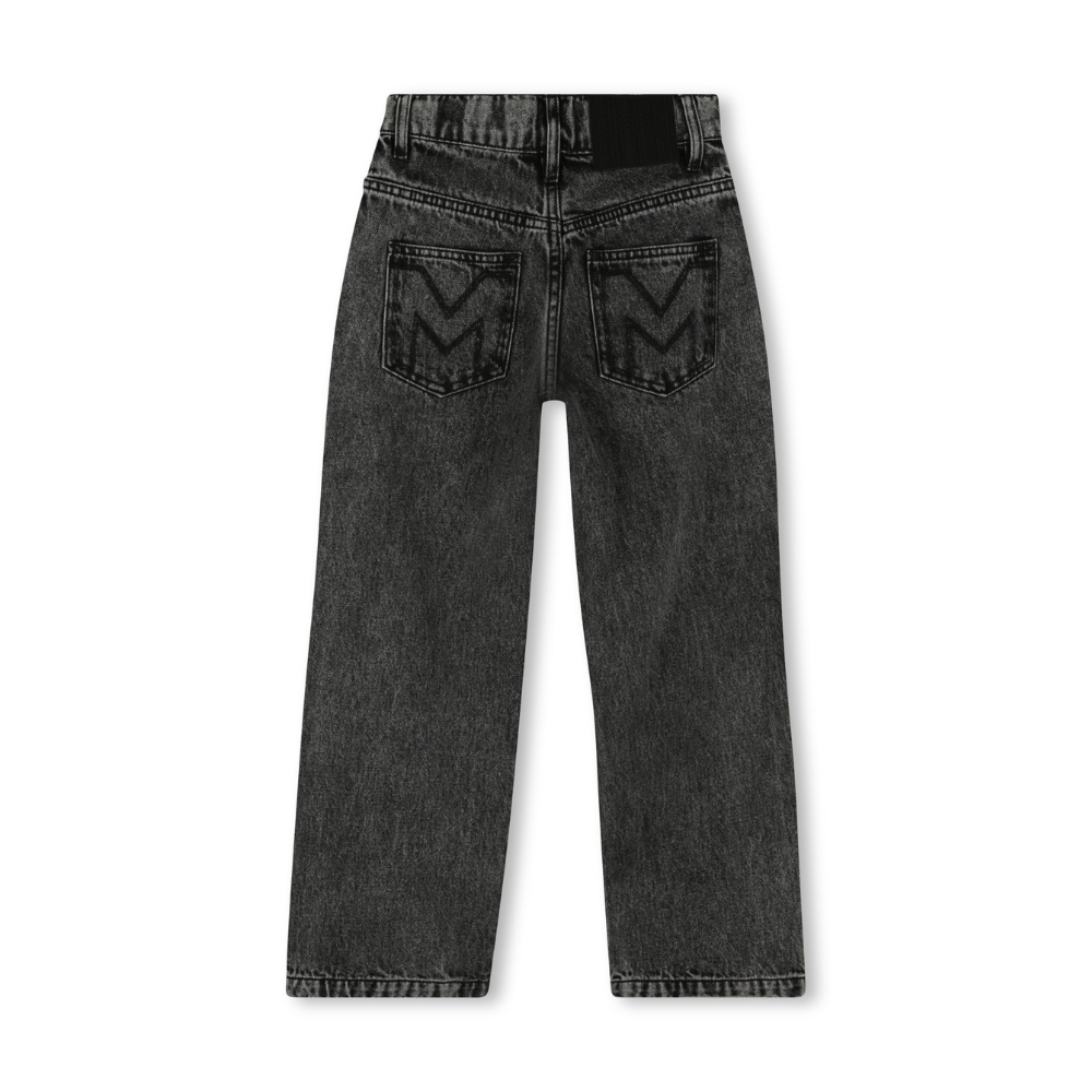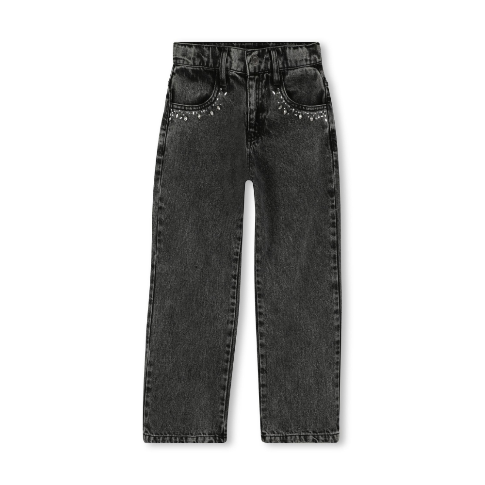 Svartar, beinar gallabuxur frá lúxushönnuðinum Marc Jacobs með skrautsteinum við vasa.