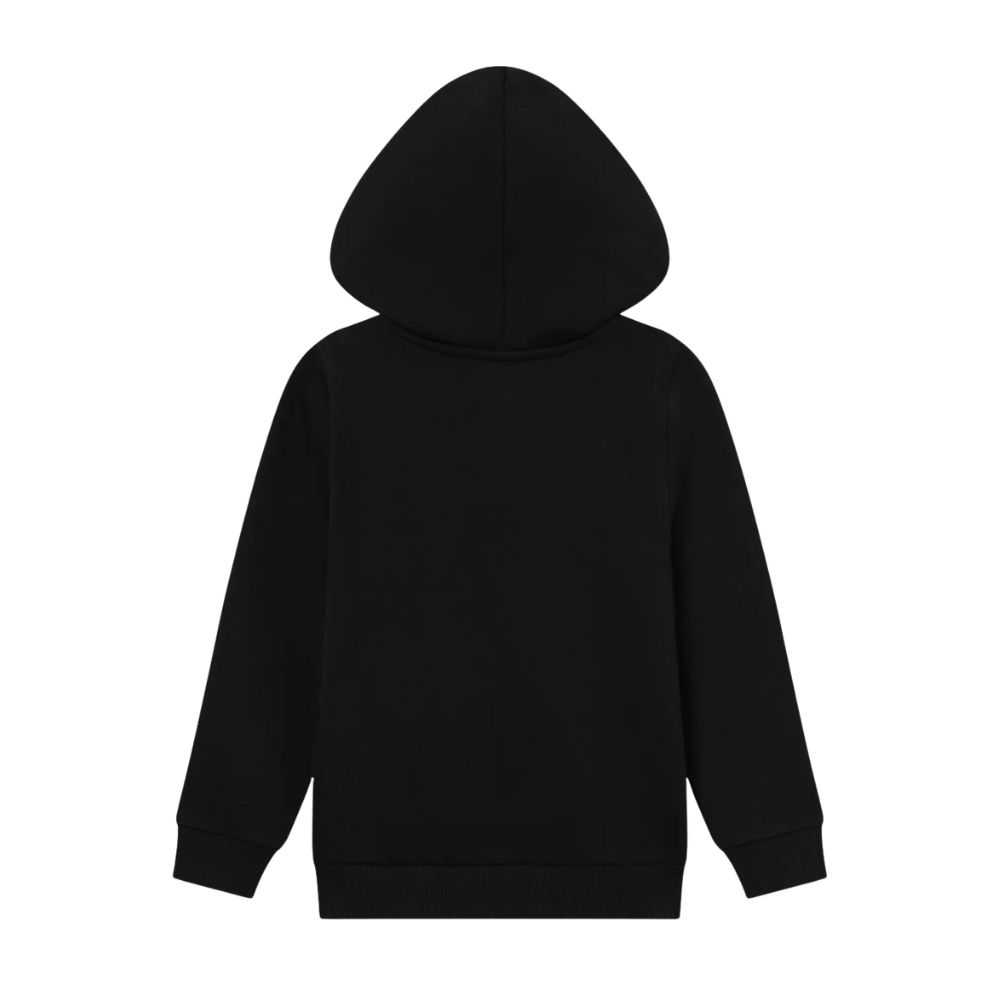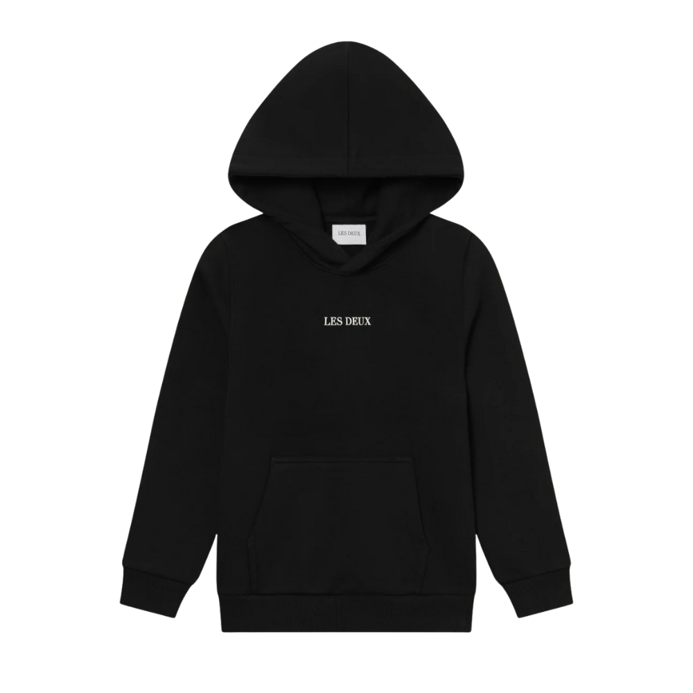 Svört hettupeysa frá Les Deux með stórum vasa og hvítu logo.