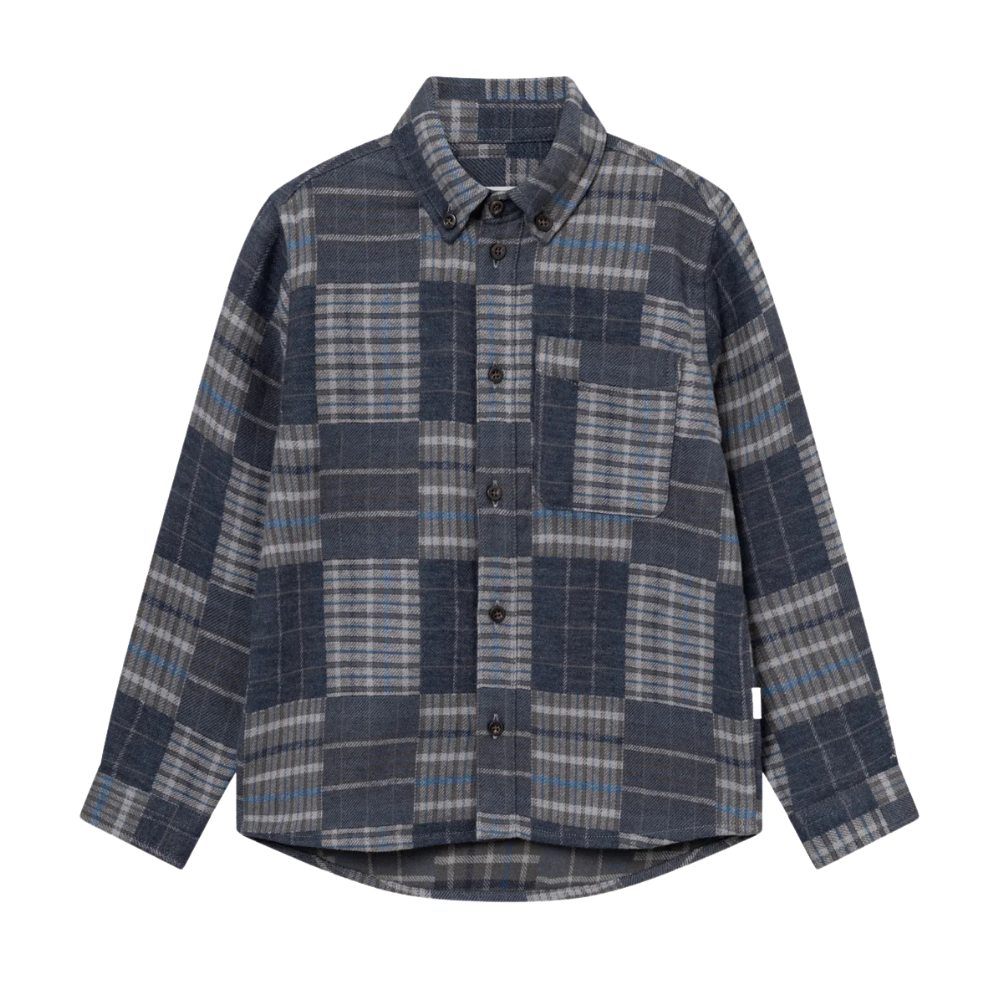 Köflótt, hneppt skyrta með kraga frá Les Deux.