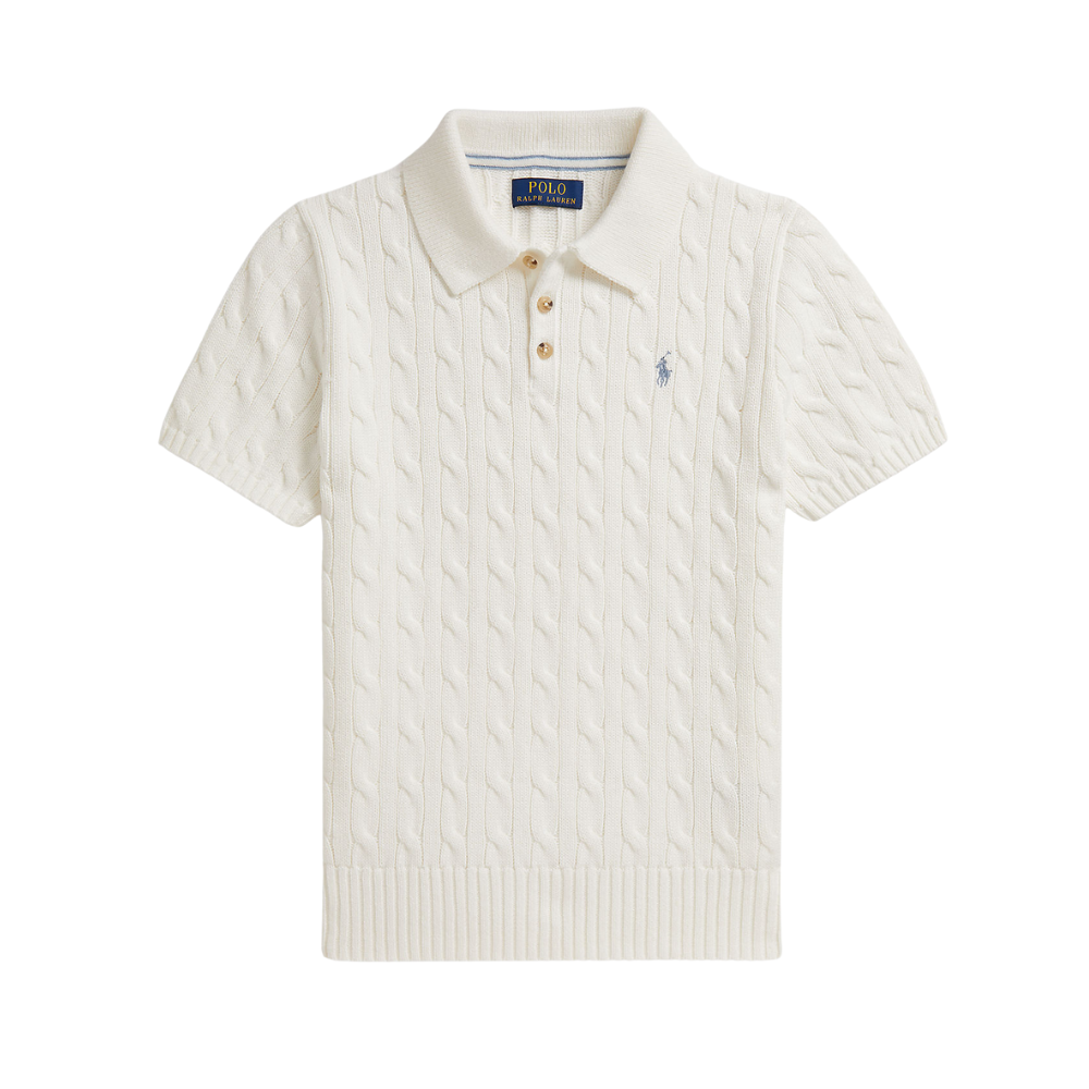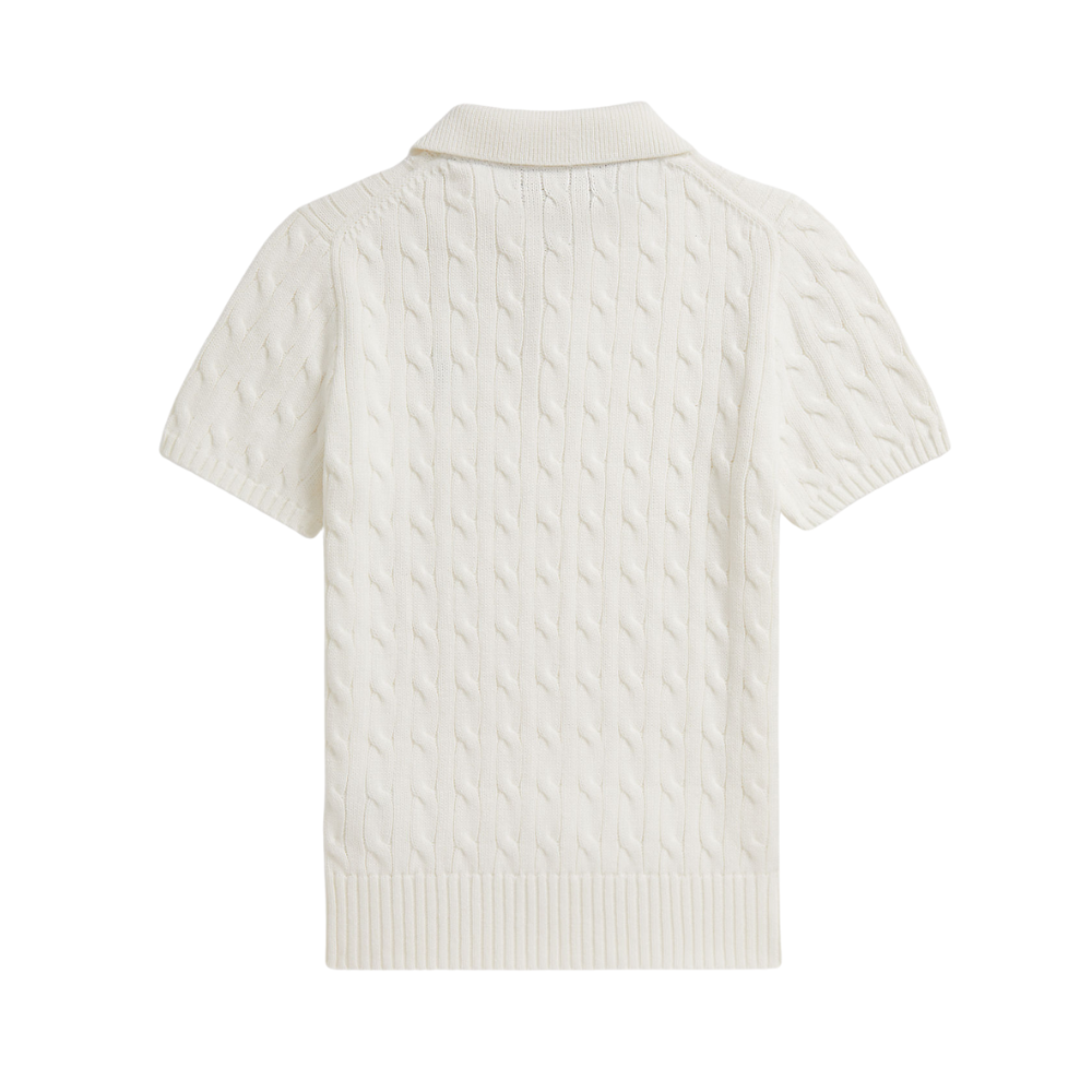 Ljós, hálf hneppt kaðlapeysa með stuttum ermum frá Polo Ralph Lauren.