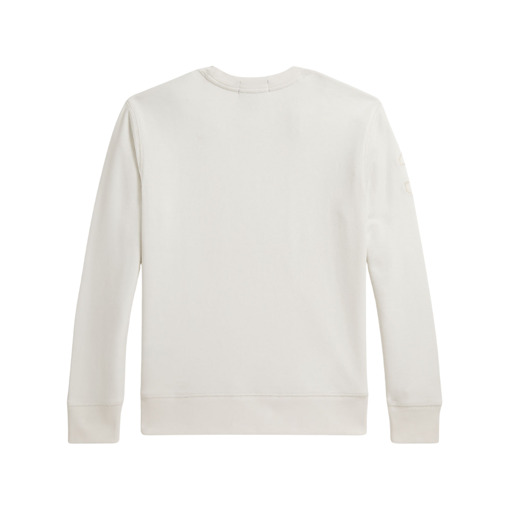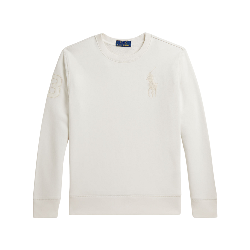 Ljós peysa frá Polo Ralph Lauren með stóru logo að framan og á ermi.