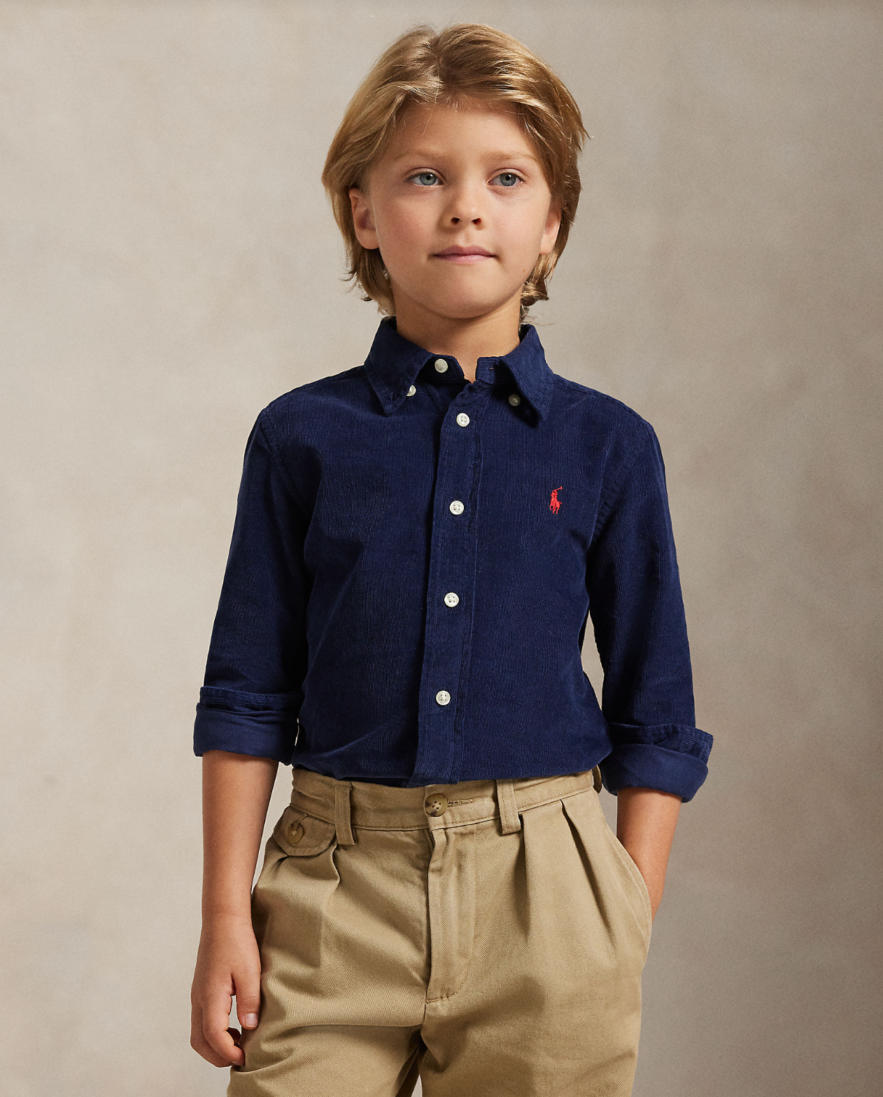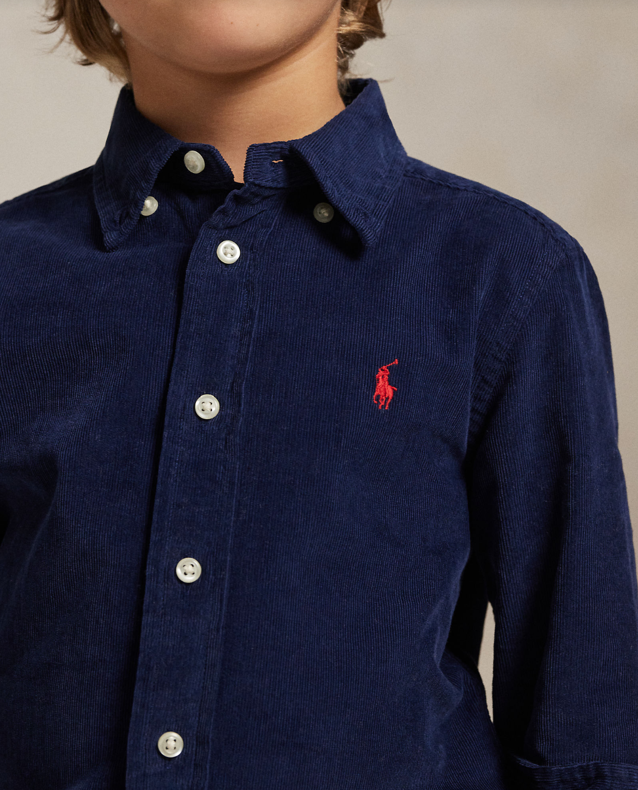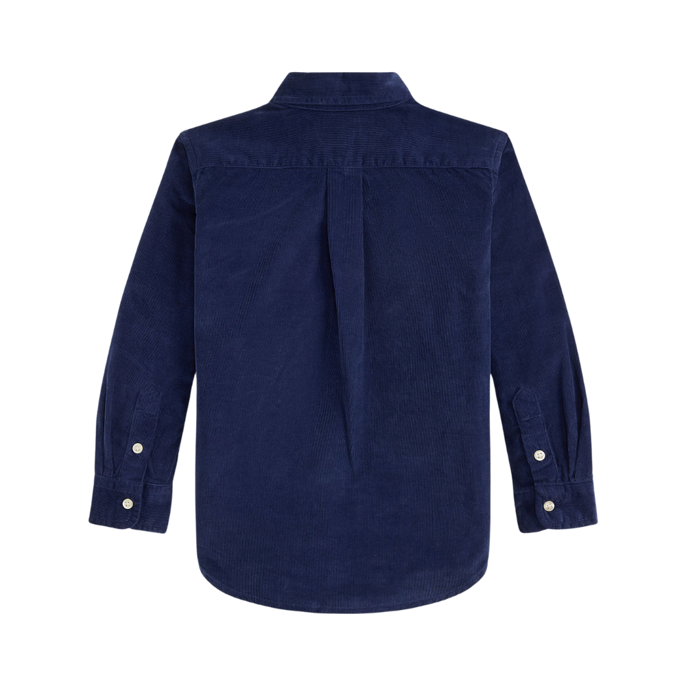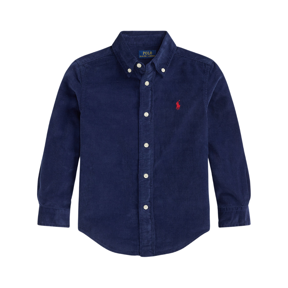 Dökk blá, hneppt skyrta með kraga frá Polo Ralph Lauren.