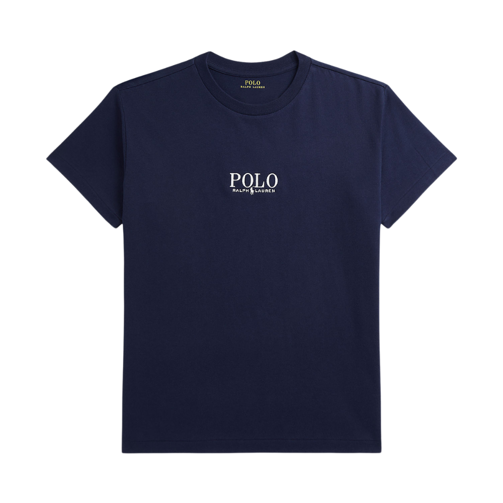 Dökk blár stuttermabolur frá Polo Ralph Lauren með hvítu logo að framan