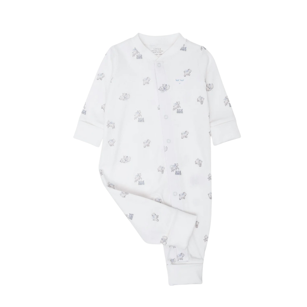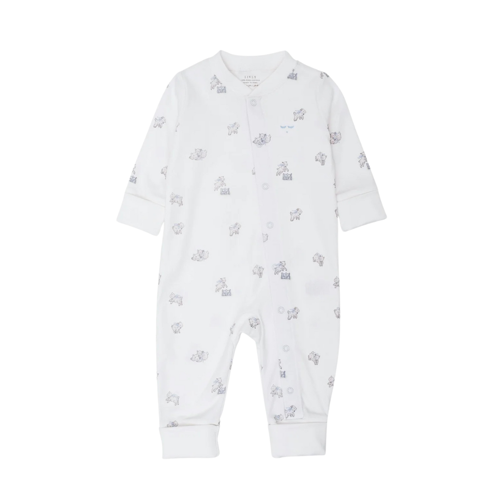 Dásamlega mjúkur og fallega myndskreyttur heilgalli frá sænska merkinu Livly. Galinn er smelltur að framan og með stroffi við ermar og skálmar.