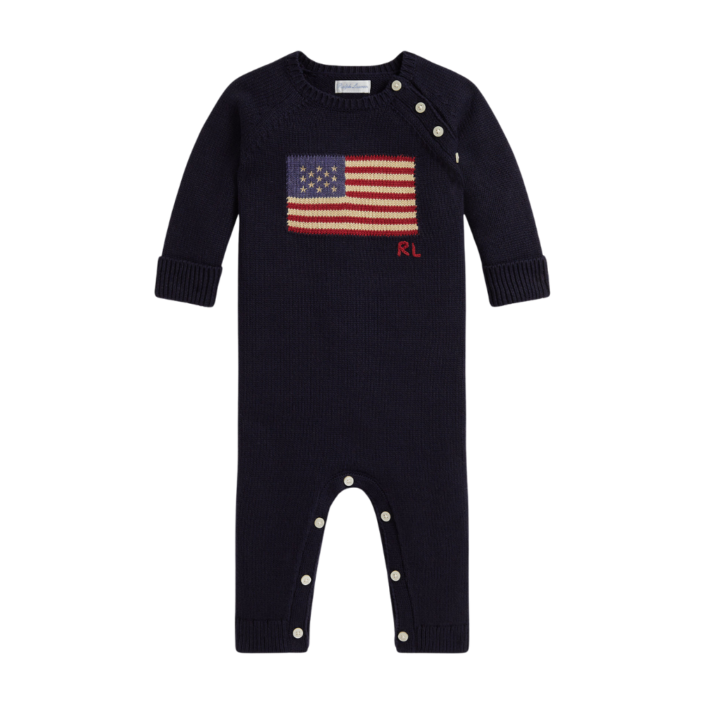 Dökk blár prjónagalli með fána frá Polo Ralpgh Lauren.