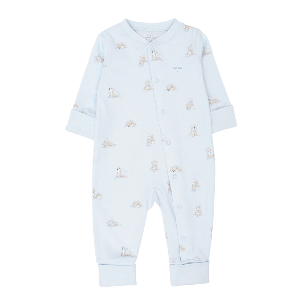 Dásamlega mjúkur og fallega myndskreyttur heilgalli frá sænska merkinu Livly. Galinn er smelltur að framan og með stroffi við ermar og skálmar.